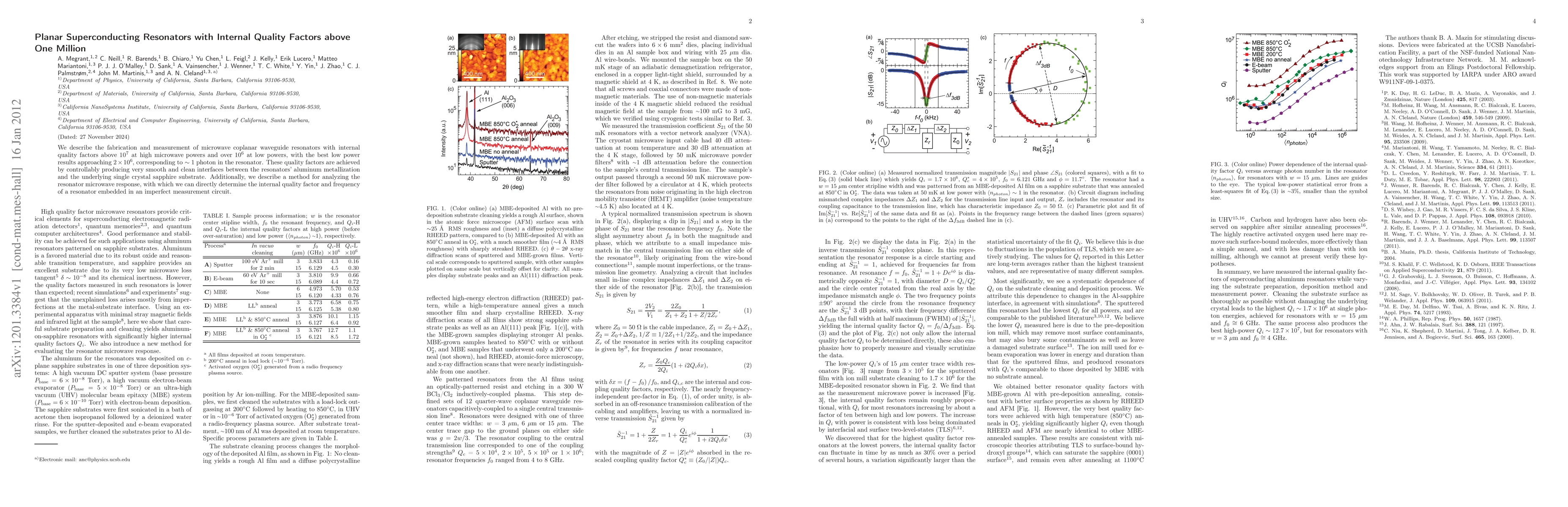 This paper details the fabrication of planar superconducting microwave resonators, achieving internal quality factors exceeding 10 million at high powers and over 1 million at low powers, with the best results nearing 2 million. The high performance is attributed to the smooth interfaces between aluminum metallization and the sapphire substrate.