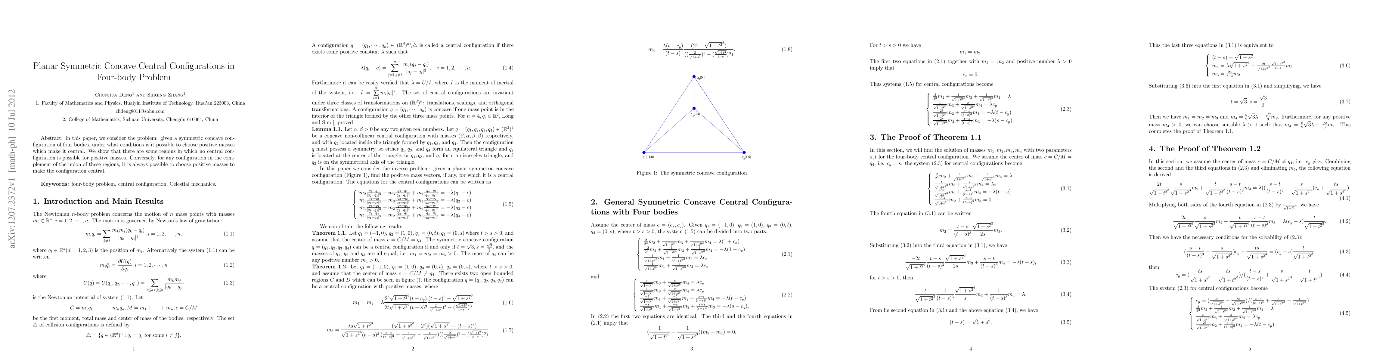 In this paper, we consider the problem: given a symmetric concave configuration of four bodies, under what conditions is it possible to choose positive masses which make it central. We show that there are some regions in which no central configuration is possible for positive masses. Conversely, for any configuration in the complement of the union of these regions, it is always possible to choose positive masses to make the configuration central.