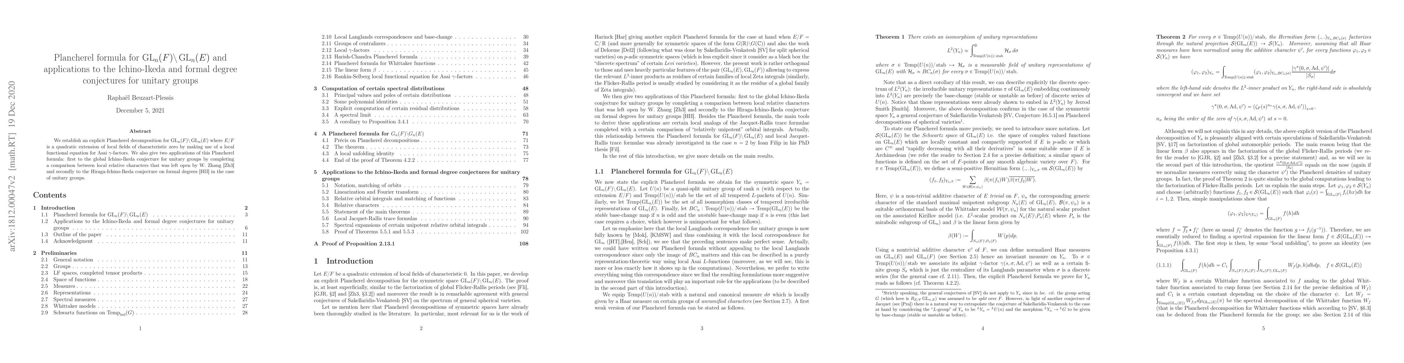 This paper establishes an explicit Plancherel formula for $\mathrm{GL}_n(F)\backslash \mathrm{GL}_n(E)$ using a local functional equation for Asai $\gamma$-factors. It applies this result to confirm the global Ichino-Ikeda conjecture for unitary groups and the Hiraga-Ichino-Ikeda conjecture on formal degrees for unitary groups.