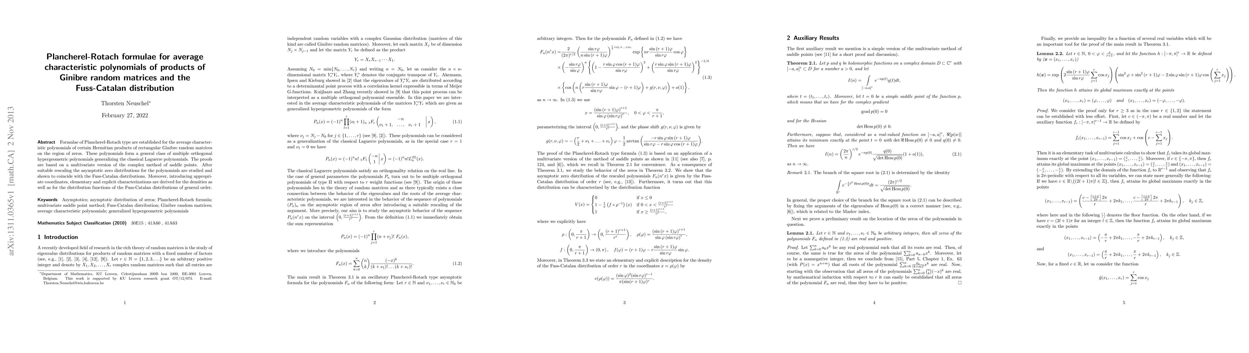 Formulae of Plancherel-Rotach type are established for the average characteristic polynomials of certain Hermitian products of rectangular Ginibre random matrices on the region of zeros. These polynomials form a general class of multiple orthogonal hypergeometric polynomials generalizing the classical Laguerre polynomials. The proofs are based on a multivariate version of the complex method of saddle points. After suitable rescaling the asymptotic zero distributions for the polynomials are studied and shown to coincide with the Fuss-Catalan distributions. Moreover, introducing appropriate coordinates, elementary and explicit characterizations are derived for the densities as well as for the distribution functions of the Fuss-Catalan distributions of general order.