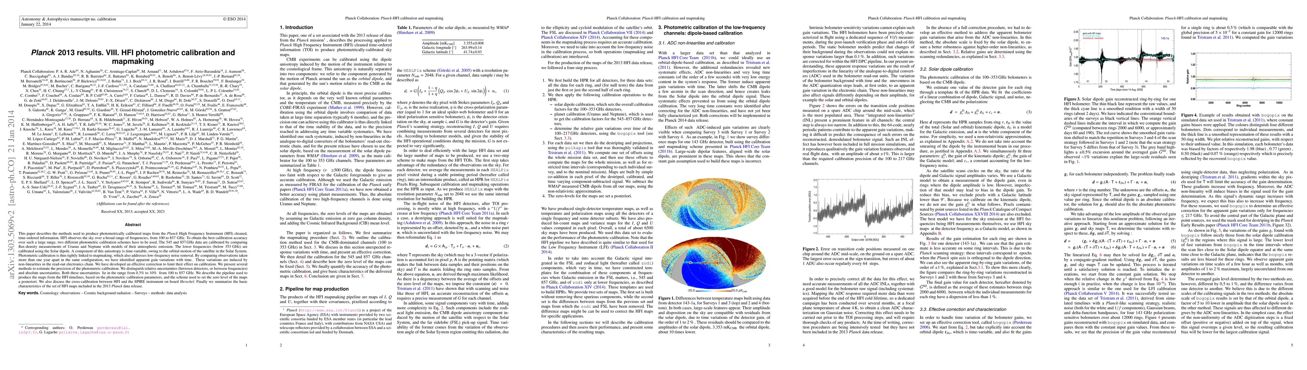The Planck 2013 results describe a process for photometrically calibrating HFI maps, correcting for variations in gain across different frequencies and detecting potential biases.