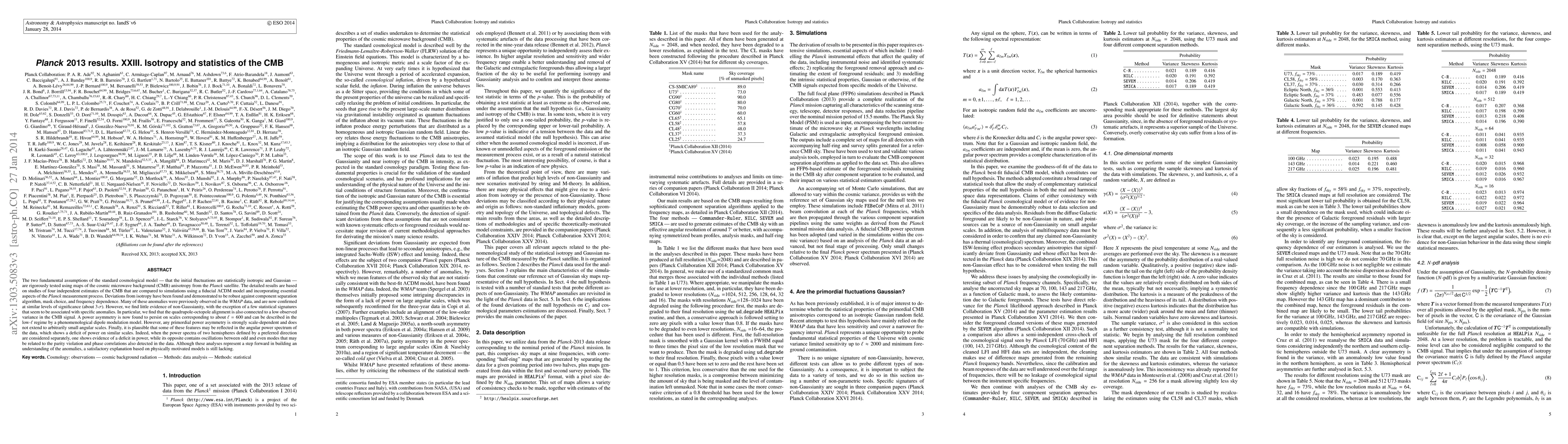 The Planck satellite's cosmic microwave background (CMB) data reveal deviations from isotropy and Gaussianity, including a quadrupole-octopole alignment and power asymmetry, but little evidence for non-Gaussianity.