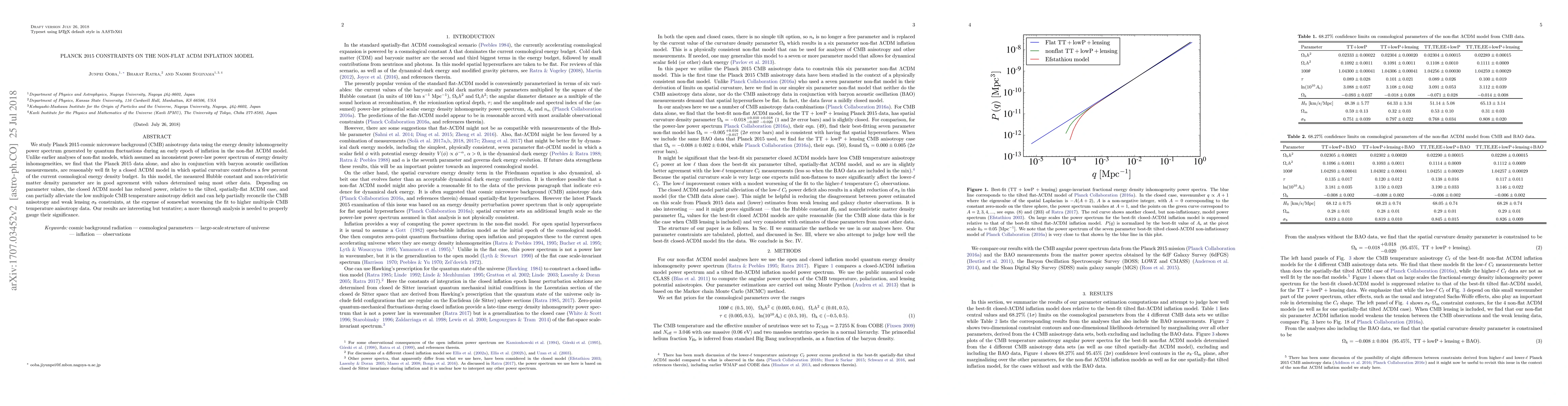 The study introduces a six-parameter non-flat ΛCDM inflation model with a physically consistent energy density inhomogeneity power spectrum, showing that Planck 2015 CMB data does not force spatial curvature to vanish in this model.