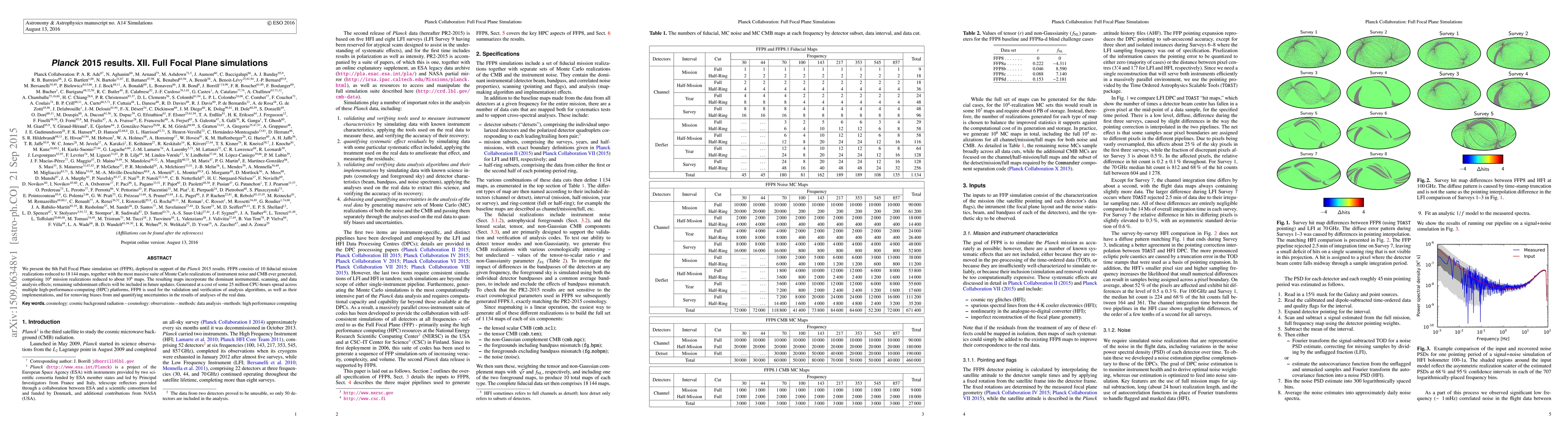 We present the 8th Full Focal Plane simulation set (FFP8), deployed in support of the Planck 2015 results. FFP8 consists of 10 fiducial mission realizations reduced to 18144 maps, together with the most massive suite of Monte Carlo realizations of instrument noise and CMB ever generated, comprising $10^4$ mission realizations reduced to about $10^6$ maps. The resulting maps incorporate the dominant instrumental, scanning, and data analysis effects; remaining subdominant effects will be included in future updates. Generated at a cost of some 25 million CPU-hours spread across multiple high-performance-computing (HPC) platforms, FFP8 is used for the validation and verification of analysis algorithms, as well as their implementations, and for removing biases from and quantifying uncertainties in the results of analyses of the real data.