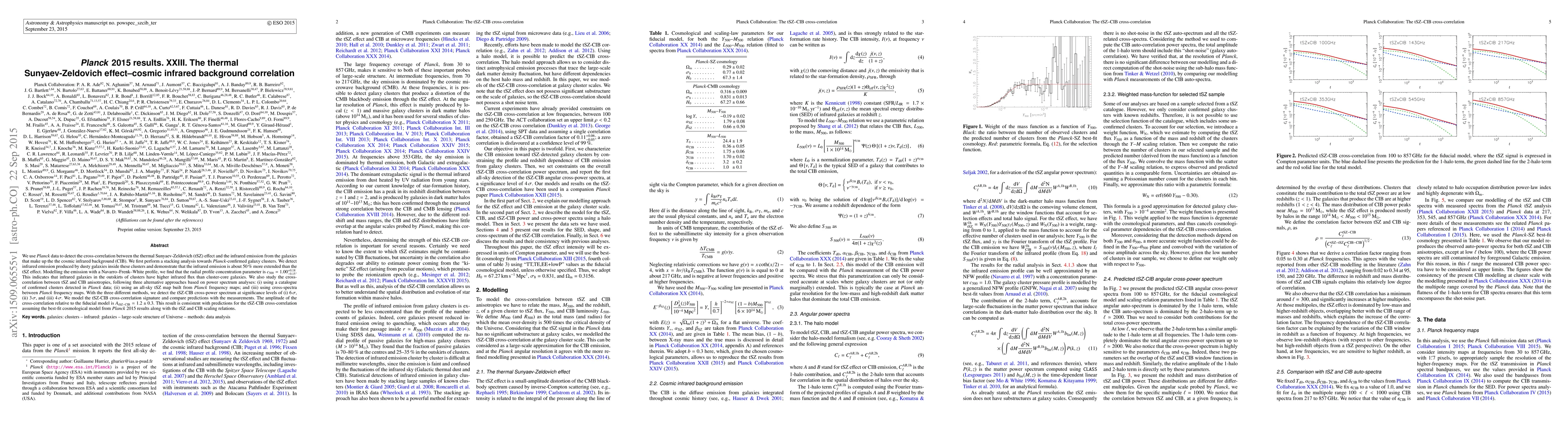 The Planck 2015 results detected a cross-correlation between the thermal Sunyaev-Zeldovich effect and the cosmic infrared background, indicating that galaxy clusters produce more infrared emission in their outskirts than at their centers.