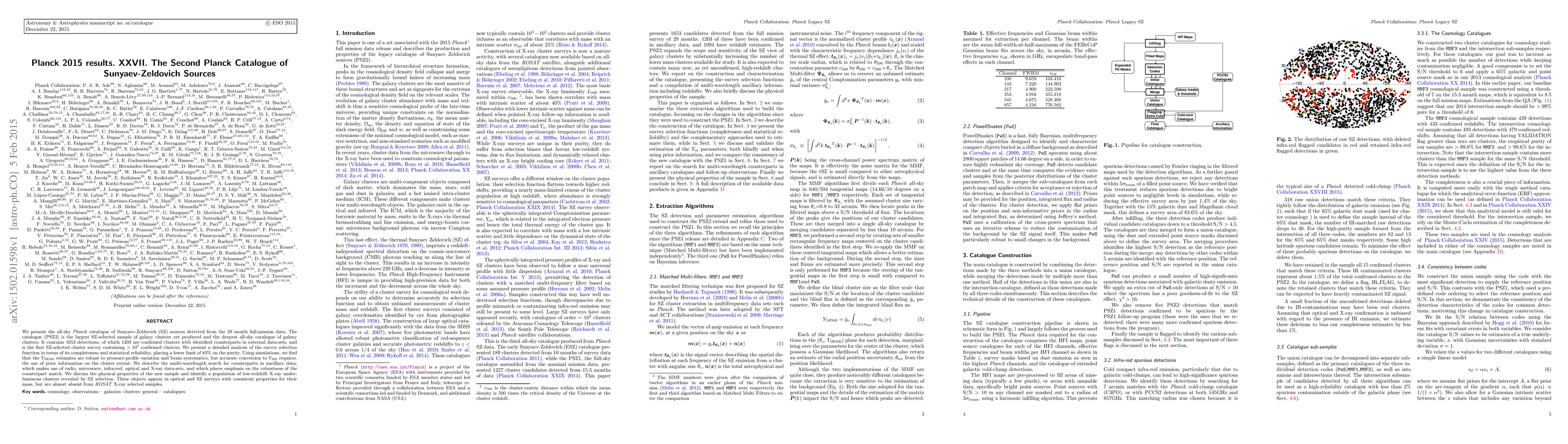 We present the all-sky Planck catalogue of Sunyaev-Zeldovich (SZ) sources detected from the 29 month full-mission data. The catalogue (PSZ2) is the largest SZ-selected sample of galaxy clusters yet produced and the deepest all-sky catalogue of galaxy clusters. It contains 1653 detections, of which 1203 are confirmed clusters with identified counterparts in external data-sets, and is the first SZ-selected cluster survey containing > $10^3$ confirmed clusters. We present a detailed analysis of the survey selection function in terms of its completeness and statistical reliability, placing a lower limit of 83% on the purity. Using simulations, we find that the Y5R500 estimates are robust to pressure-profile variation and beam systematics, but accurate conversion to Y500 requires. the use of prior information on the cluster extent. We describe the multi-wavelength search for counterparts in ancillary data, which makes use of radio, microwave, infra-red, optical and X-ray data-sets, and which places emphasis on the robustness of the counterpart match. We discuss the physical properties of the new sample and identify a population of low-redshift X-ray under- luminous clusters revealed by SZ selection. These objects appear in optical and SZ surveys with consistent properties for their mass, but are almost absent from ROSAT X-ray selected samples.
