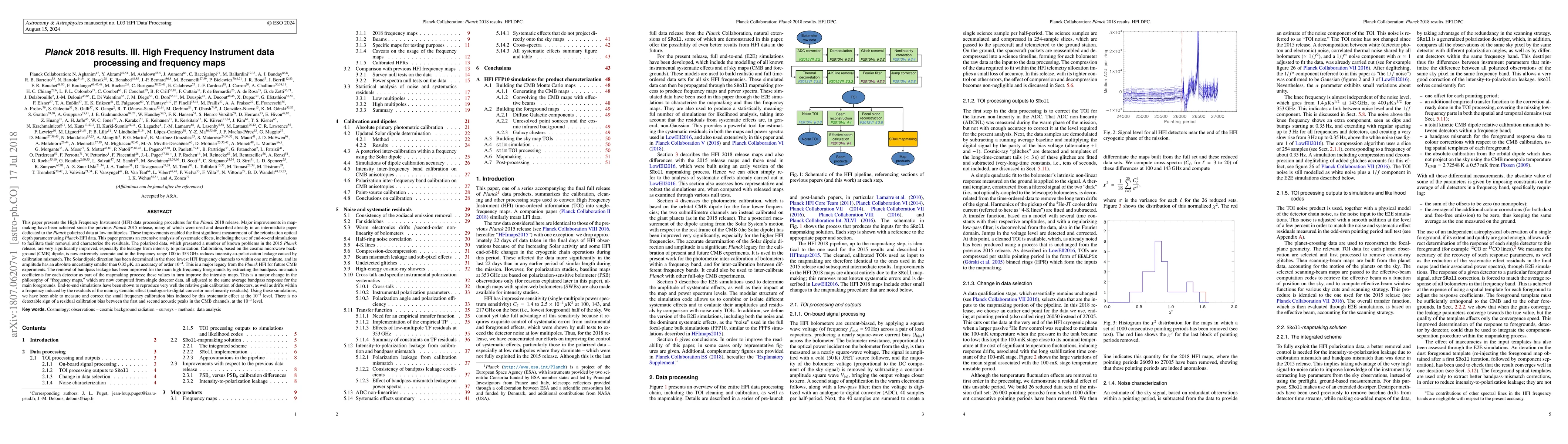 This paper details the advanced data processing techniques for the Planck 2018 High Frequency Instrument (HFI), achieving significant improvements in mapmaking and systematic effect removal. Major advancements include precise measurements of reionization optical depth and highly accurate calibration, reducing intensity-to-polarization leakage and achieving unprecedented accuracy in the Solar dipole direction.