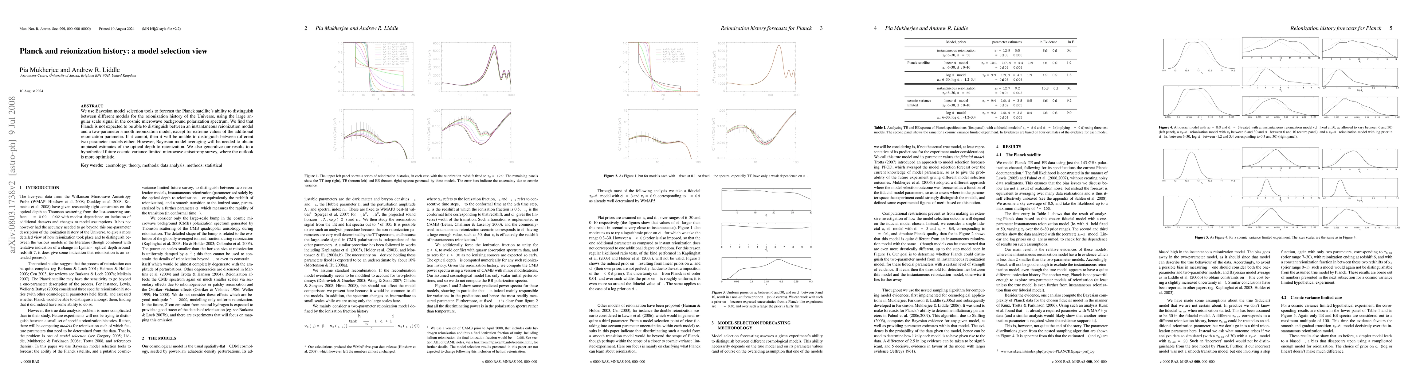 We use Bayesian model selection tools to forecast the Planck satellite's ability to distinguish between different models for the reionization history of the Universe, using the large angular scale signal in the cosmic microwave background polarization spectrum. We find that Planck is not expected to be able to distinguish between an instantaneous reionization model and a two-parameter smooth reionization model, except for extreme values of the additional reionization parameter. If it cannot, then it will be unable to distinguish between different two-parameter models either. However, Bayesian model averaging will be needed to obtain unbiased estimates of the optical depth to reionization. We also generalize our results to a hypothetical future cosmic variance limited microwave anisotropy survey, where the outlook is more optimistic.