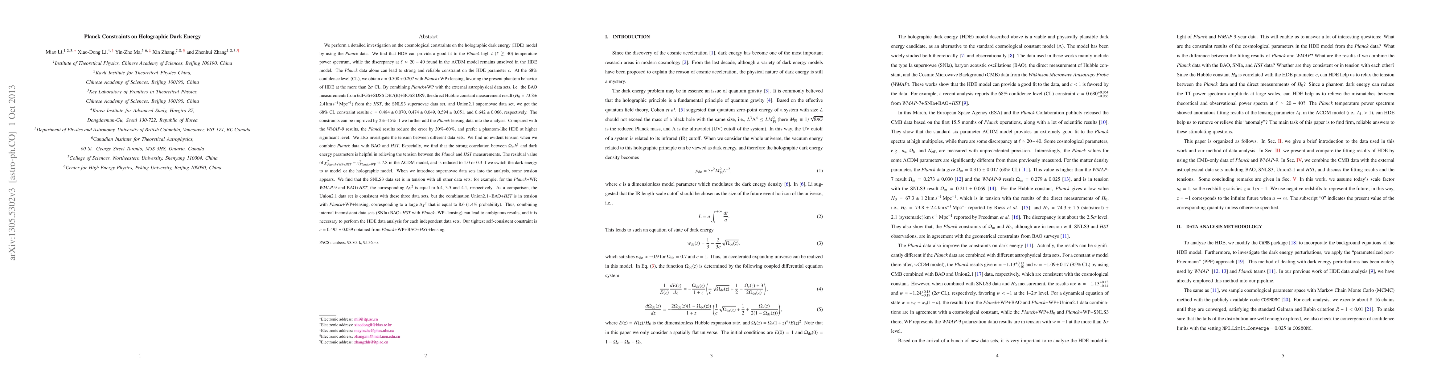 This paper investigates the cosmological constraints on the holographic dark energy (HDE) model using Planck data, finding strong constraints on the HDE parameter c, favoring a phantom-like HDE. Combining Planck data with other measurements improves constraints and reduces errors compared to WMAP9, though SNLS3 supernova data shows tension with other datasets.