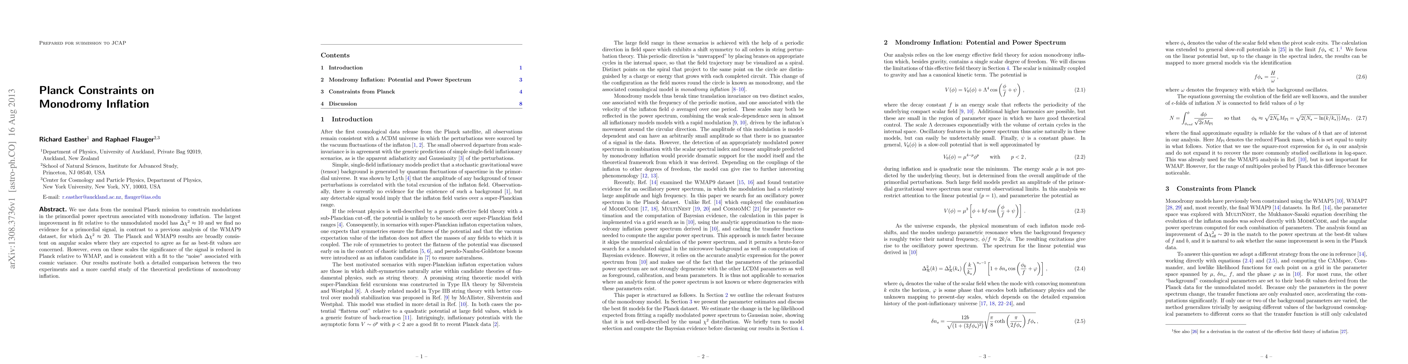 The Planck mission data constrains monodromy inflation with no evidence for a primordial signal, contrasting previous WMAP9 results, and highlights the need for further study of theoretical predictions.