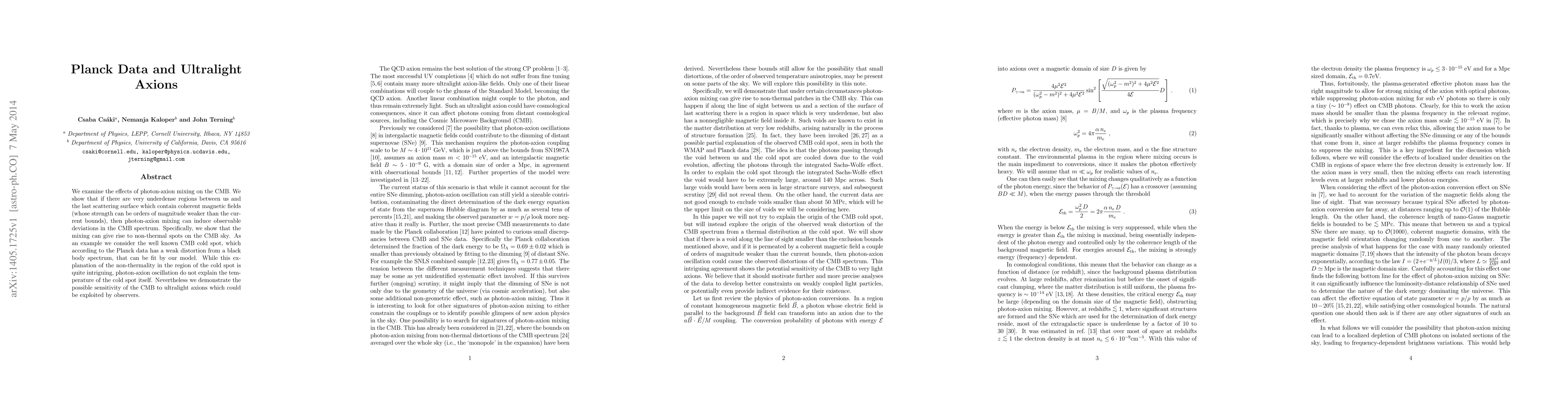 We examine the effects of photon-axion mixing on the CMB. We show that if there are very underdense regions between us and the last scattering surface which contain coherent magnetic fields (whose strength can be orders of magnitude weaker than the current bounds), then photon-axion mixing can induce observable deviations in the CMB spectrum. Specifically, we show that the mixing can give rise to non-thermal spots on the CMB sky. As an example we consider the well known CMB cold spot, which according to the Planck data has a weak distortion from a black body spectrum, that can be fit by our model. While this explanation of the non-thermality in the region of the cold spot is quite intriguing, photon-axion oscillation do not explain the temperature of the cold spot itself. Nevertheless we demonstrate the possible sensitivity of the CMB to ultralight axions which could be exploited by observers.