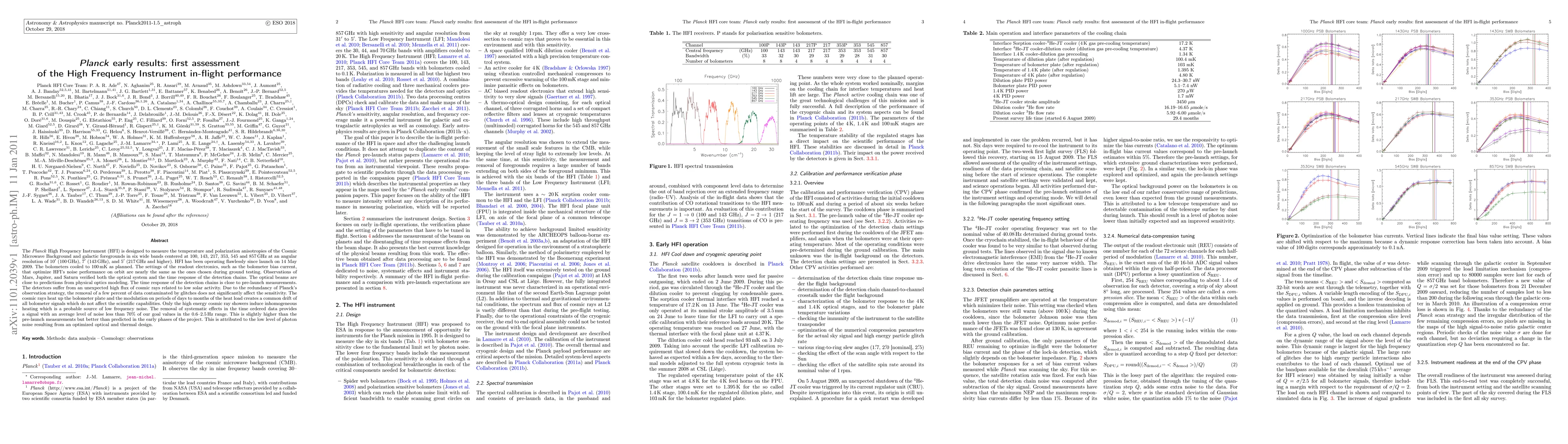The Planck High Frequency Instrument (HFI) has successfully measured Cosmic Microwave Background and galactic foregrounds across six frequency bands, operating flawlessly since its launch in 2009. Despite an unexpected influx of cosmic rays, the instrument's redundancy and optimized settings maintain its scientific capabilities.
