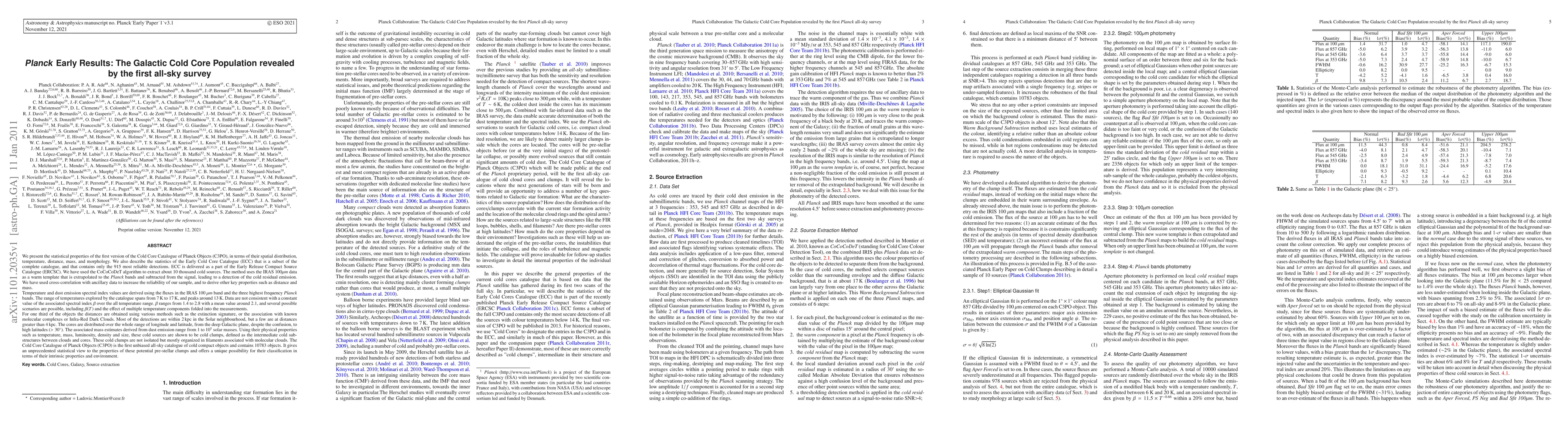 The Planck Early Results reveal the first all-sky catalogue of Galactic cold cores, detailing their spatial distribution, temperature, distance, mass, and morphology. The catalogue identifies 10,783 cold sources with temperatures ranging from 7K to 17K, and dust emission spectral indices (\(\beta\)) from 1.4 to 2.8, suggesting complex physical scenarios.