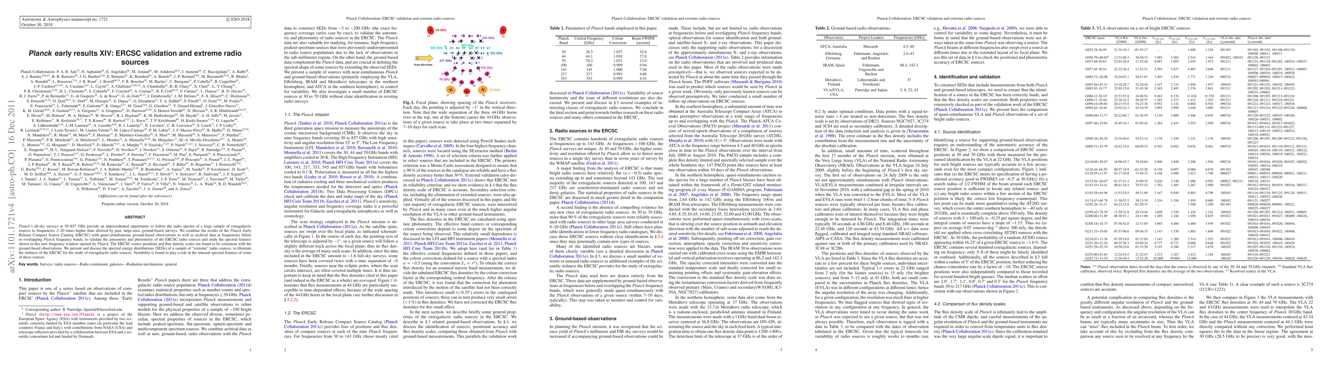 This paper validates the Planck Early Release Compact Source Catalog (ERCSC) by comparing its radio source positions and flux densities with ground-based observations, confirming their consistency. It also explores the spectral energy distributions of extreme radio sources, highlighting the role of variability in their unusual spectral features.