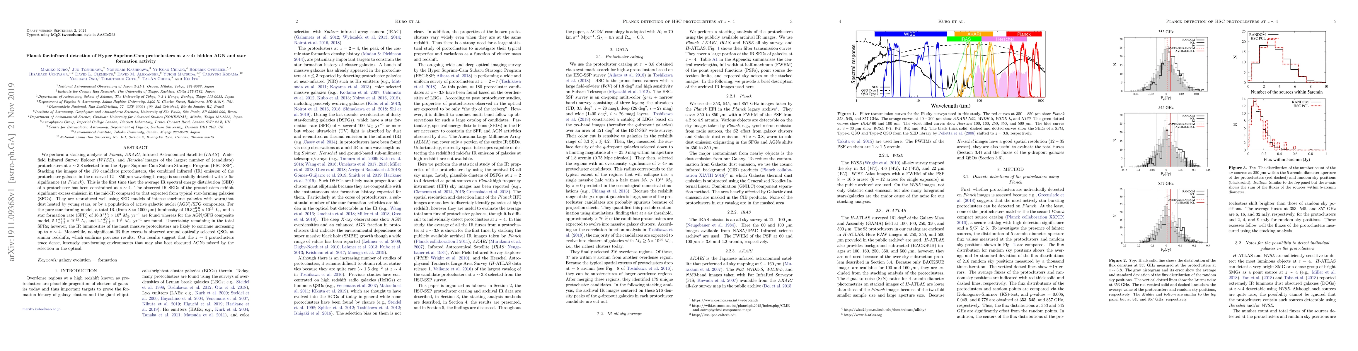 This paper uses Planck and other infrared data to detect the combined IR emission from protoclusters at $z\sim4$, revealing significant excess mid-IR emission indicative of intense starburst activity or AGN/SFG composites, suggesting hidden AGN and high star formation rates in these early dense environments.