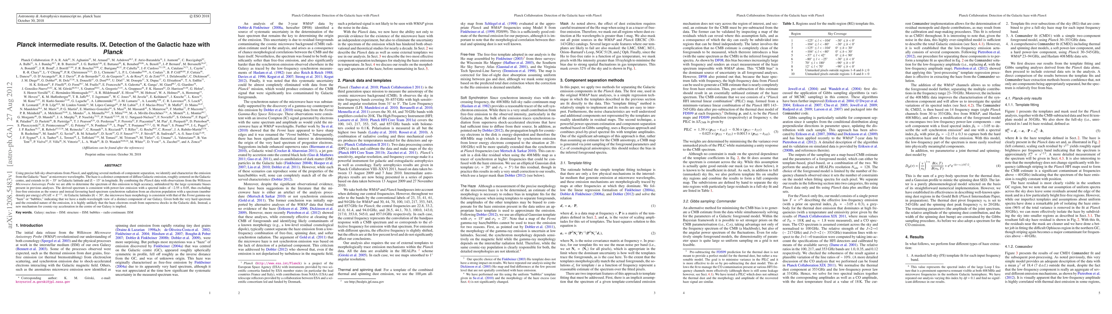 Using precise full-sky observations from Planck, and applying several methods of component separation, we identify and characterize the emission from the Galactic "haze" at microwave wavelengths. The haze is a distinct component of diffuse Galactic emission, roughly centered on the Galactic centre, and extends to |b| ~35 deg in Galactic latitude and |l| ~15 deg in longitude. By combining the Planck data with observations from the WMAP we are able to determine the spectrum of this emission to high accuracy, unhindered by the large systematic biases present in previous analyses. The derived spectrum is consistent with power-law emission with a spectral index of -2.55 +/- 0.05, thus excluding free-free emission as the source and instead favouring hard-spectrum synchrotron radiation from an electron population with a spectrum (number density per energy) dN/dE ~ E^-2.1. At Galactic latitudes |b|<30 deg, the microwave haze morphology is consistent with that of the Fermi gamma-ray "haze" or "bubbles," indicating that we have a multi-wavelength view of a distinct component of our Galaxy. Given both the very hard spectrum and the extended nature of the emission, it is highly unlikely that the haze electrons result from supernova shocks in the Galactic disk. Instead, a new mechanism for cosmic-ray acceleration in the centre of our Galaxy is implied.