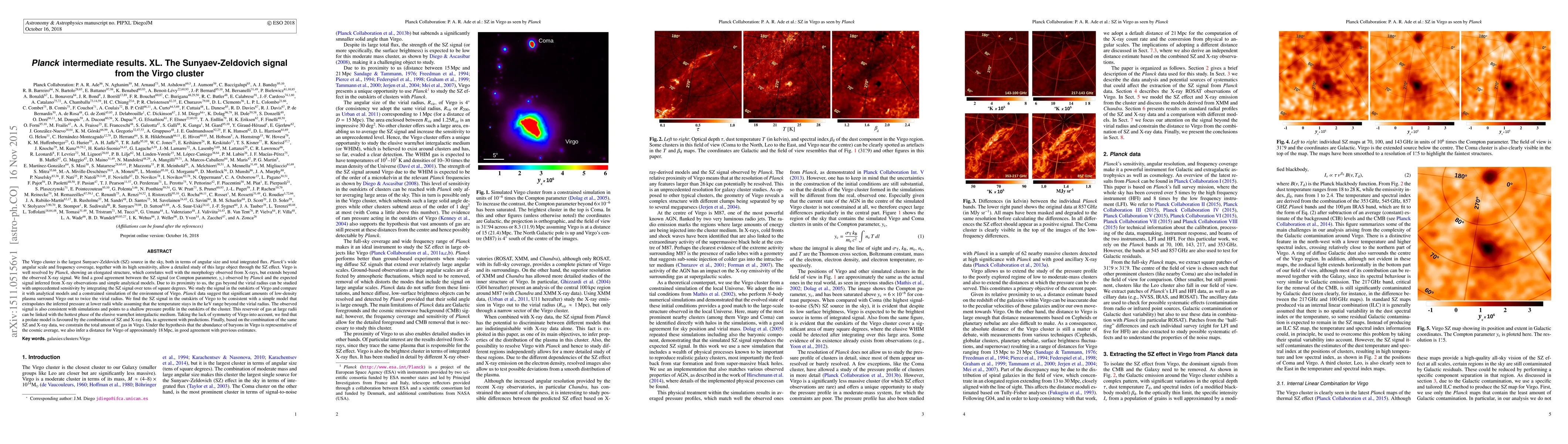 The Virgo cluster is the largest Sunyaev-Zeldovich (SZ) source in the sky, both in terms of angular size and total integrated flux. Planck's wide angular scale and frequency coverage, together with its high sensitivity, allow a detailed study of this large object through the SZ effect. Virgo is well resolved by Planck, showing an elongated structure, which correlates well with the morphology observed from X-rays, but extends beyond the observed X-ray signal. We find a good agreement between the SZ signal (or Compton paranmeter, y_c) observed by Planck and the expected signal inferred from X-ray observations and simple analytical models. Due to its proximity to us, the gas beyond the virial radius can be studied with unprecedented sensitivity by integrating the SZ signal over tens of square degrees. We study the signal in the outskirts of Virgo and compare it with analytical models and a constrained simulation of the environment of Virgo. Planck data suggest that significant amounts of low-density plasma surround Virgo out to twice the virial radius. We find the SZ signal in the outskirts of Virgo to be consistent with a simple model that extrapolates the inferred pressure at lower radii while assuming that the temperature stays in the keV range beyond the virial radius. The observed signal is also consistent with simulations and points to a shallow pressure profile in the outskirts of the cluster. This reservoir of gas at large radii can be linked with the hottest phase of the elusive warm/hot intergalactic medium. Taking the lack of symmetry of Virgo into account, we find that a prolate model is favoured by the combination of SZ and X-ray data, in agreement with predictions.