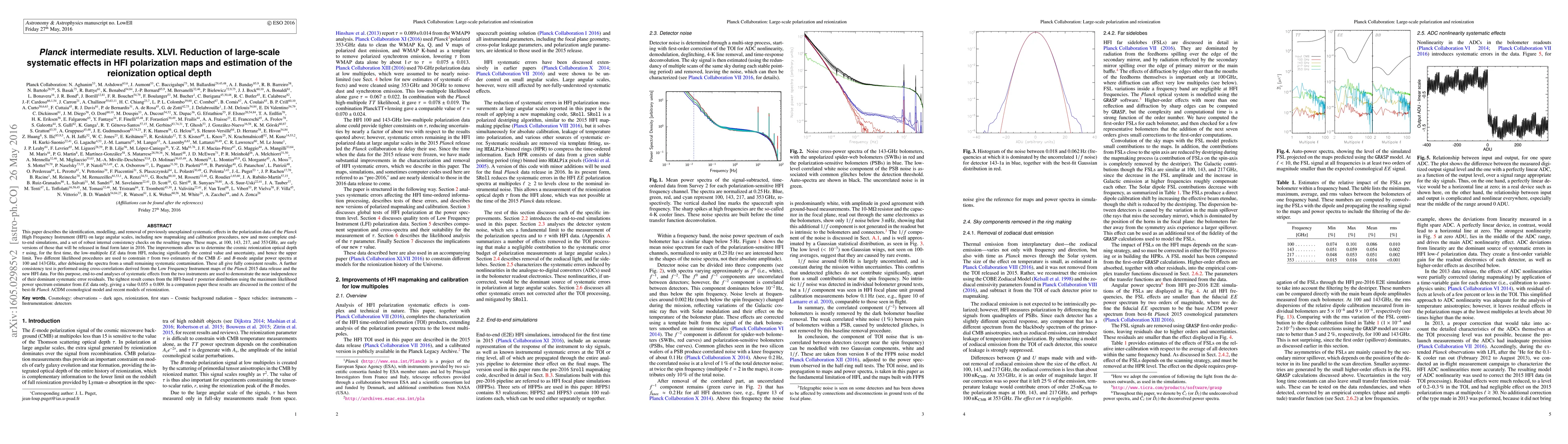 This paper details the identification and removal of systematic effects in Planck HFI polarization data, leading to improved maps at various frequencies. The refined data enable a more precise estimation of the cosmic reionization optical depth $\tau$, yielding a value of $0.055\pm 0.009$ from $EE$ data.