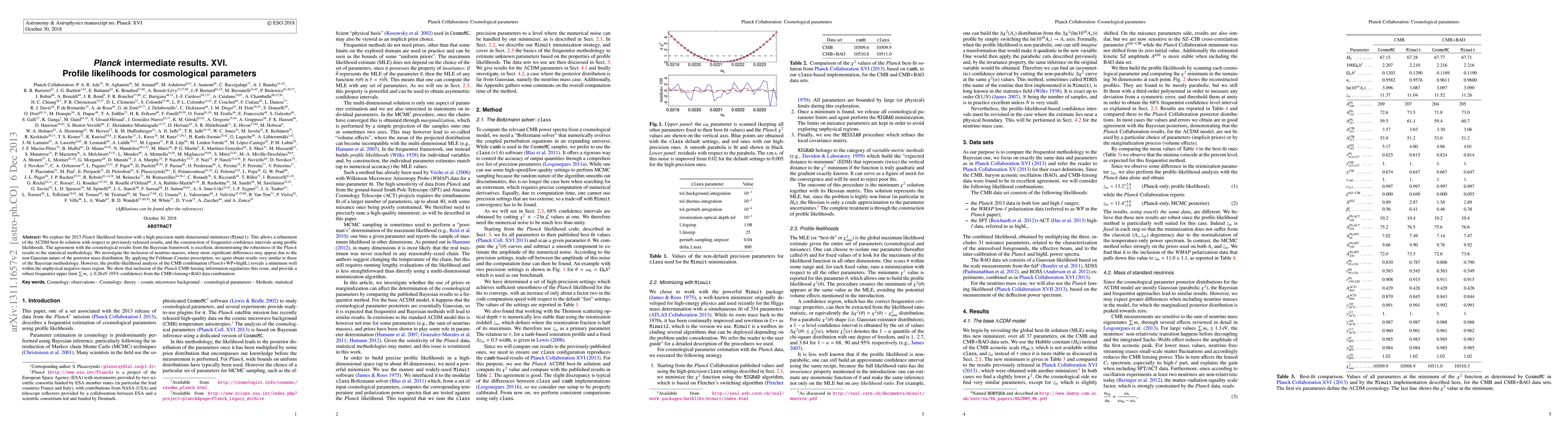 This paper refines the Lambda-CDM cosmological model using the 2013 Planck data and profile likelihoods, achieving excellent agreement with Bayesian results. It also provides a robust upper limit of $M_\nu < 0.26 eV$ for neutrino masses, resolving issues with the minimum in the negative-mass region by incorporating CMB-lensing data.