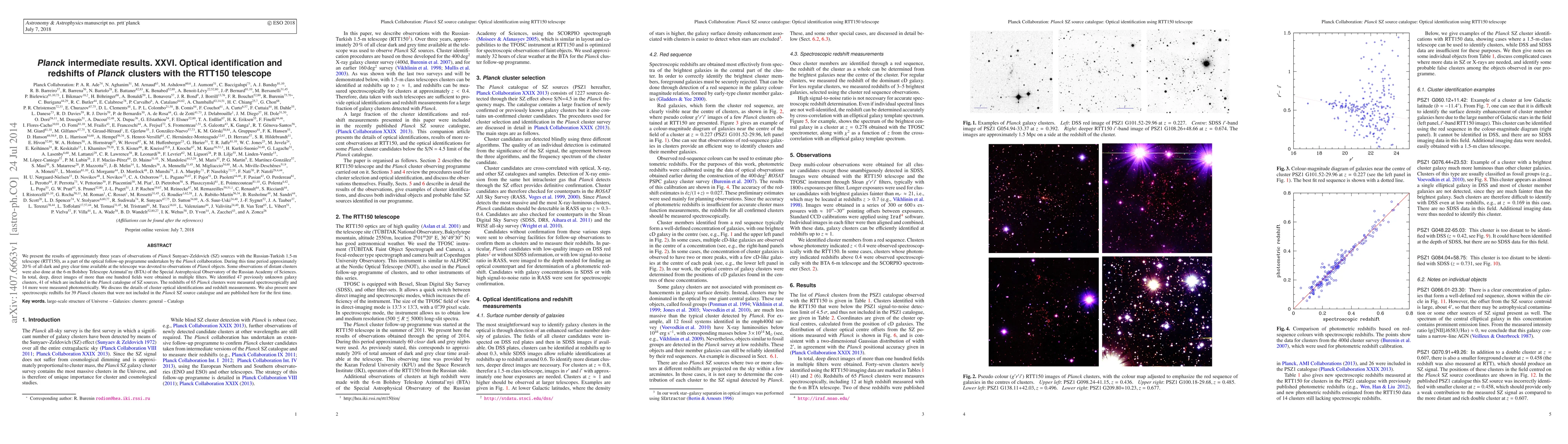 We present the results of approximately three years of observations of Planck Sunyaev-Zeldovich (SZ) sources with the Russian-Turkish 1.5-m telescope (RTT150), as a part of the optical follow-up programme undertaken by the Planck collaboration. During this time period approximately 20% of all dark and grey clear time available at the telescope was devoted to observations of Planck objects. Some observations of distant clusters were also done at the 6-m Bolshoy Telescope Azimutal'ny (BTA) of the Special Astrophysical Observatory of the Russian Academy of Sciences. In total, deep, direct images of more than one hundred fields were obtained in multiple filters. We identified 47 previously unknown galaxy clusters, 41 of which are included in the Planck catalogue of SZ sources. The redshifts of 65 Planck clusters were measured spectroscopically and 14 more were measured photometrically. We discuss the details of cluster optical identifications and redshift measurements. We also present new spectroscopic redhifts for 39 Planck clusters that were not included in the Planck SZ source catalogue and are published here for the first time.
