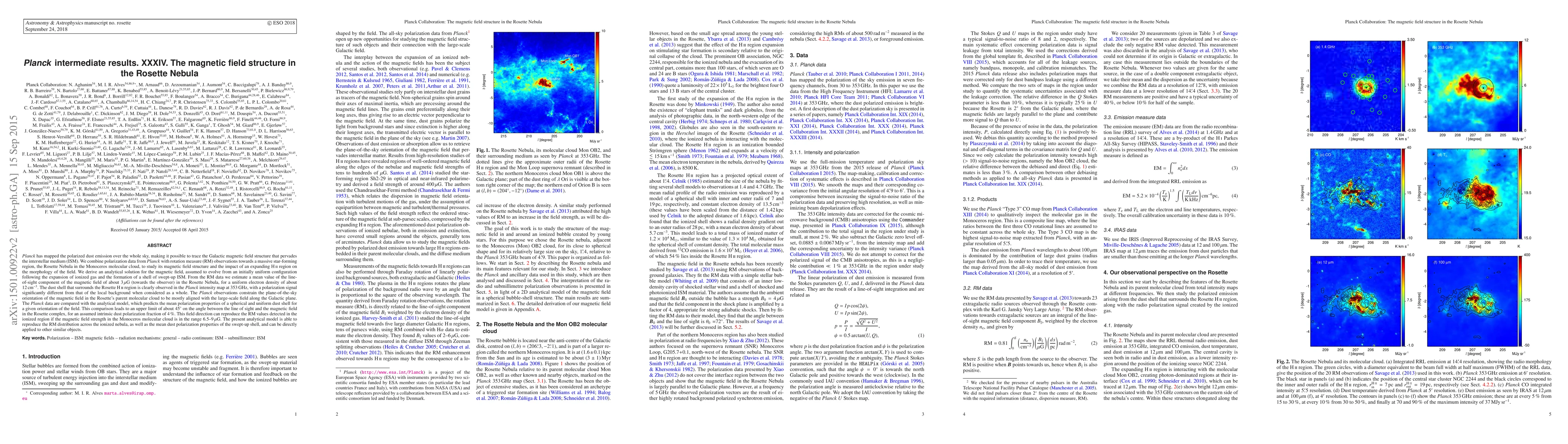 This paper combines Planck polarization data with rotation measure observations to study the magnetic field structure in the Rosette Nebula, revealing a mean line-of-sight magnetic field of about 3 microG and constraining the plane-of-the-sky orientation to align with the Galactic plane. The analysis suggests an upper limit of 45 degrees for the angle between the line of sight and the magnetic field.