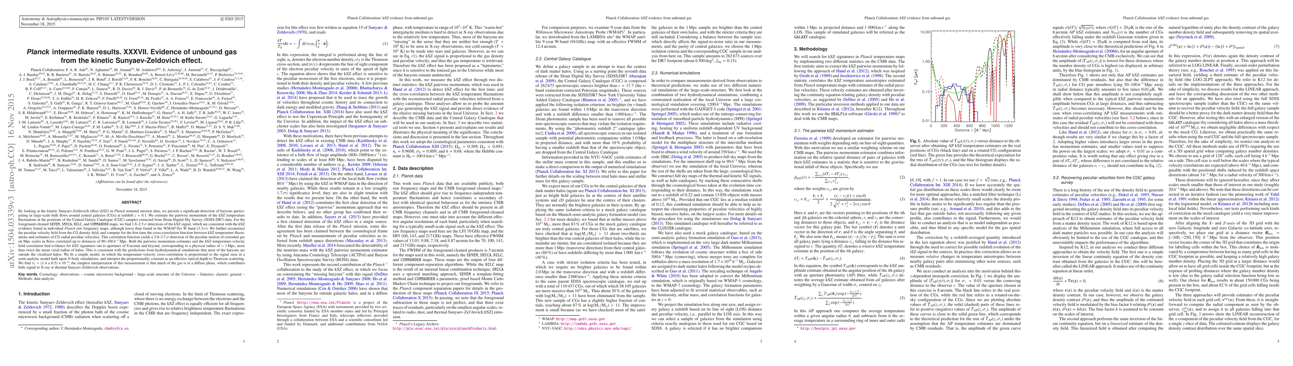 The research detects unbound, hot gas through the kinetic Sunyaev-Zeldovich (kSZ) effect in Planck data, finding kSZ signals correlated over Mpc scales, indicating baryons participating in large-scale bulk flows around central galaxies at z≈0.1. The study suggests most baryons reside outside virialized halos, supported by an 'effective' Thomson scattering optical depth of τ_T=(1.4±0.5)×10^-4, implying a diffuse gas phase contributing little to X-ray or thermal SZ observations.