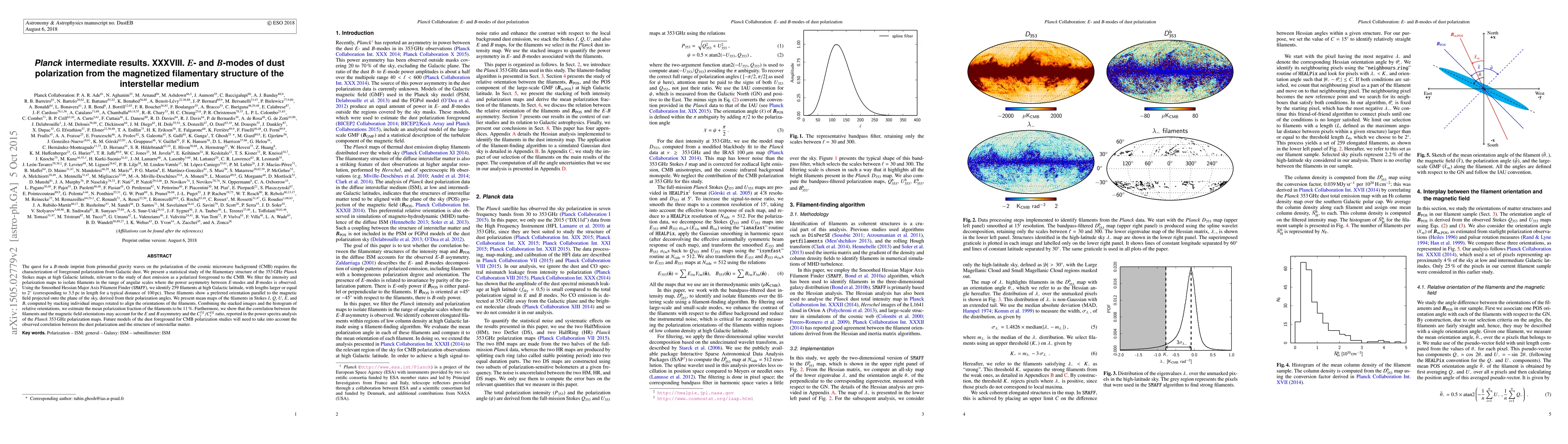 This paper presents a statistical study of filamentary structures in the interstellar medium at high Galactic latitude, identified using the Smoothed Hessian Major Axis Filament Finder. It finds that these filaments, which show a preferred orientation parallel to the magnetic field, contribute to the polarization of Galactic dust and may account for the observed E and B mode asymmetry in the CMB polarization maps.