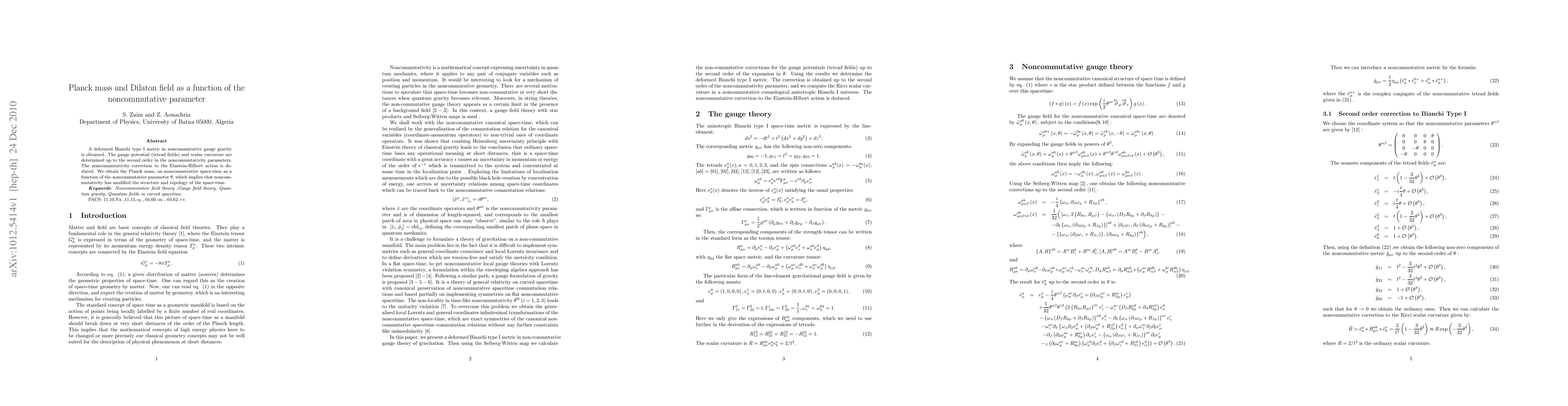 A deformed Bianchi type I metric in noncommutative gauge gravity is obtained. The gauge potential (tetrad fields) and scalar curvature are determined up to the second order in the noncommutativity parameters. The noncommutativity correction to the Einstein-Hilbert action is deduced. We obtain the Planck mass, on noncommutative space-time as a function of the noncommutative parameter {\theta}, which implies that noncommutativity has modified the structure and topology of the space-time.