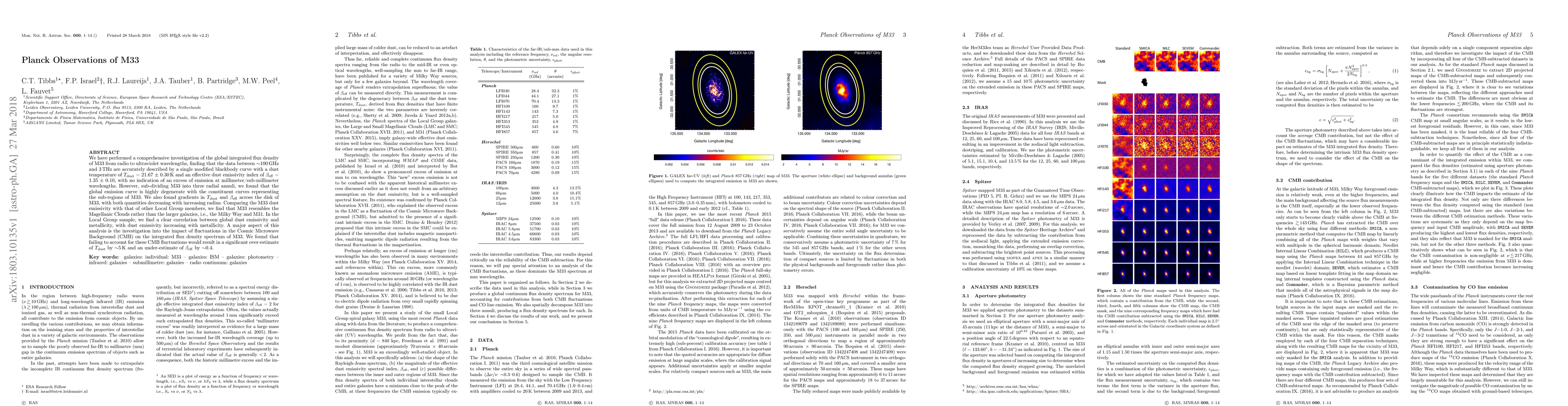 We have performed a comprehensive investigation of the global integrated flux density of M33 from radio to ultraviolet wavelengths, finding that the data between $\sim$100 GHz and 3 THz are accurately described by a single modified blackbody curve with a dust temperature of $T_\mathrm{dust}$ = 21.67$\pm$0.30 K and an effective dust emissivity index of $\beta_\mathrm{eff}$ = 1.35$\pm$0.10, with no indication of an excess of emission at millimeter/sub-millimeter wavelengths. However, sub-dividing M33 into three radial annuli, we found that the global emission curve is highly degenerate with the constituent curves representing the sub-regions of M33. We also found gradients in $T_\mathrm{dust}$ and $\beta_\mathrm{eff}$ across the disk of M33, with both quantities decreasing with increasing radius. Comparing the M33 dust emissivity with that of other Local Group members, we find that M33 resembles the Magellanic Clouds rather than the larger galaxies, i.e., the Milky Way and M31. In the Local Group sample, we find a clear correlation between global dust emissivity and metallicity, with dust emissivity increasing with metallicity. A major aspect of this analysis is the investigation into the impact of fluctuations in the Cosmic Microwave Background (CMB) on the integrated flux density spectrum of M33. We found that failing to account for these CMB fluctuations would result in a significant over-estimate of $T_\mathrm{dust}$ by $\sim$5 K and an under-estimate of $\beta_\mathrm{eff}$ by $\sim$0.4.