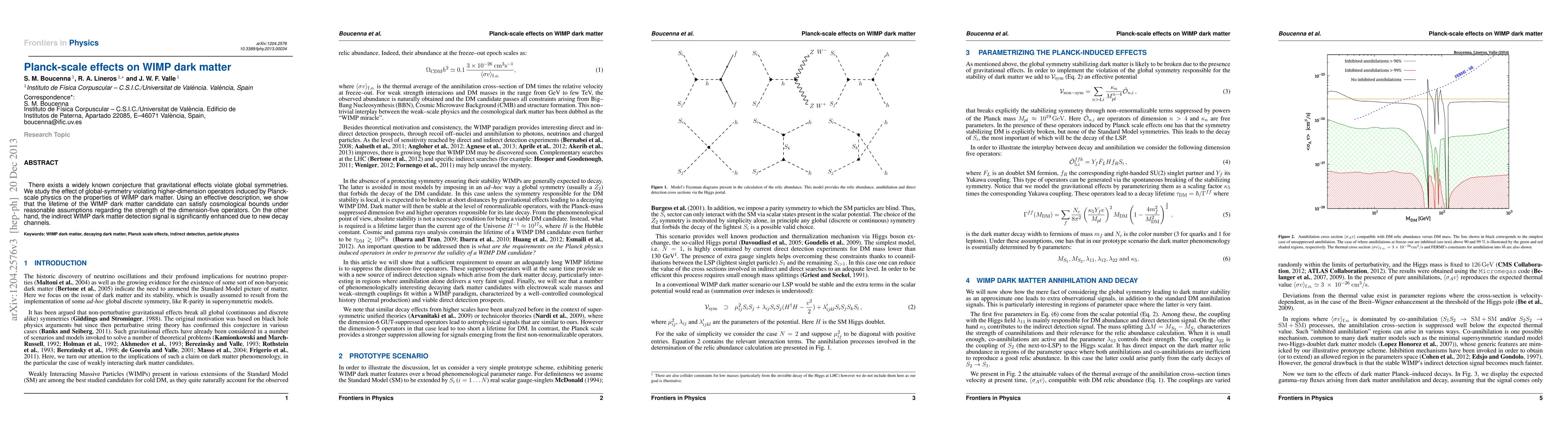 This paper investigates how Planck-scale physics affects WIMP dark matter, demonstrating that while the WIMP's lifetime may meet cosmological constraints, new decay channels enhance indirect detection signals. The study uses an effective field theory approach to explore higher-dimensional operators that violate global symmetries.