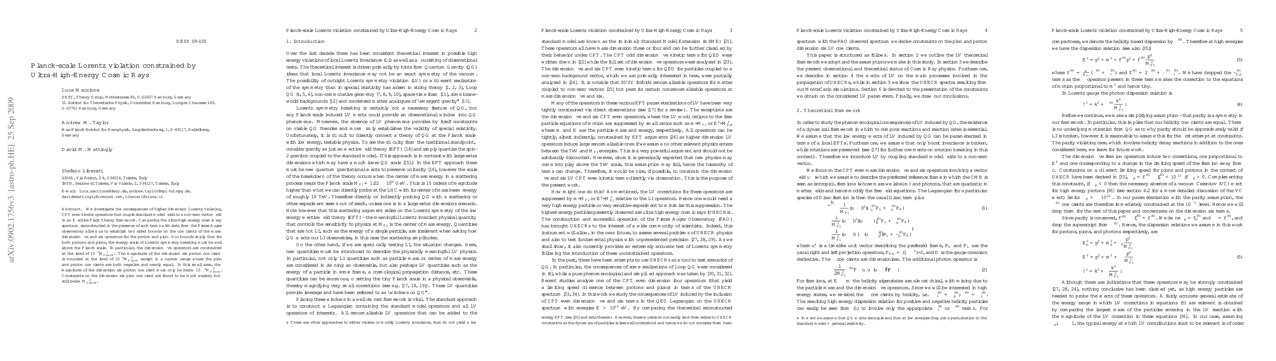 This paper investigates higher-dimensional Lorentz violation in an Effective Field Theory framework, constraining coefficients of mass dimension five and six operators using ultra-high-energy cosmic ray data. The study finds that the energy scale for Lorentz symmetry breaking must exceed the Planck scale, with stringent bounds on the proton and pion coefficients.