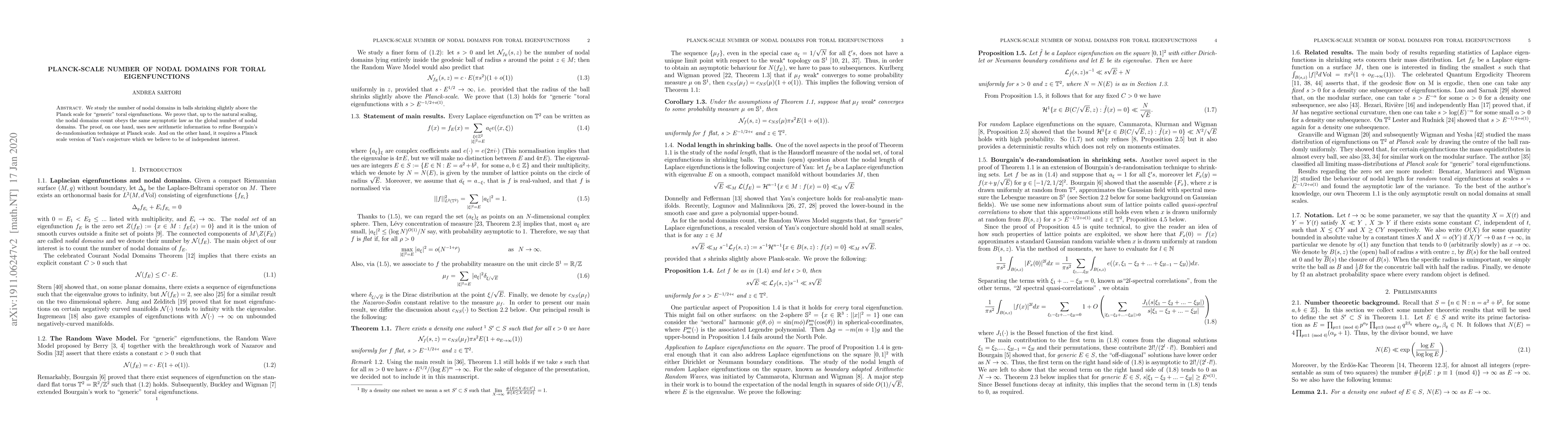 This paper investigates the number of nodal domains in toral eigenfunctions at the Planck scale, proving that the count in shrinking balls follows the same asymptotic behavior as the global nodal domains. The proof leverages refined arithmetic insights and a Planck scale adaptation of Yau's conjecture.
