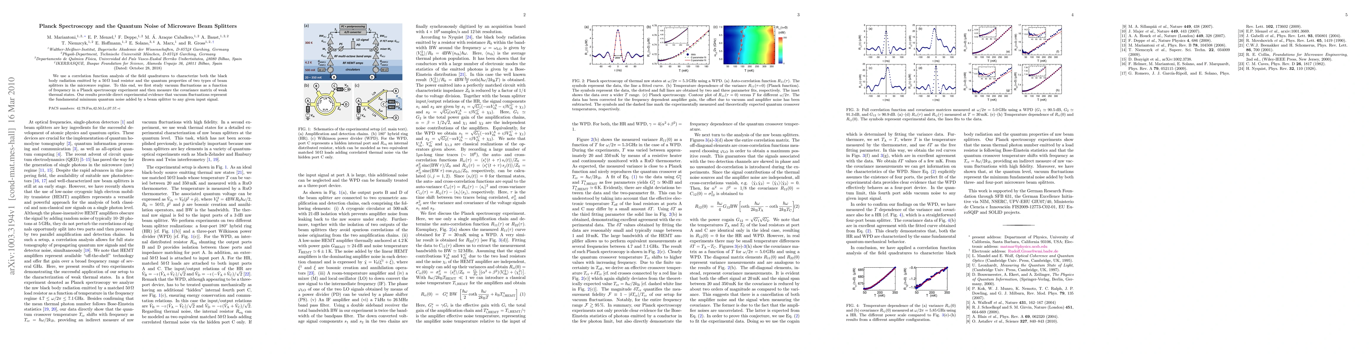 This paper investigates the quantum noise characteristics of microwave beam splitters using Planck spectroscopy and correlation function analysis. The study confirms that vacuum fluctuations constitute the minimal quantum noise introduced by beam splitters to input signals.