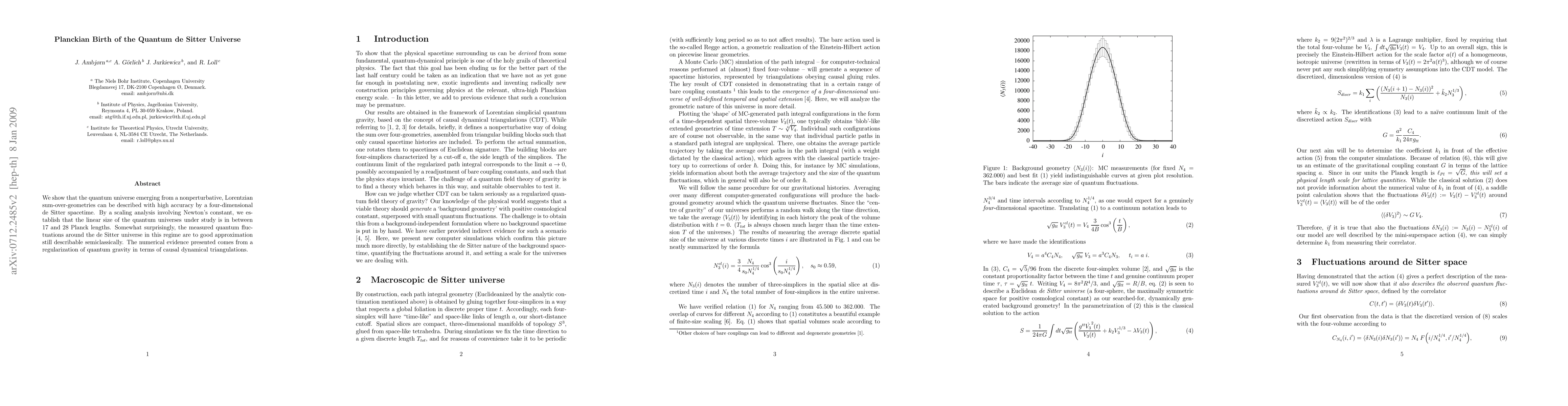 This paper demonstrates that a quantum universe emerging from a nonperturbative approach can be accurately modeled by a four-dimensional de Sitter spacetime, with its linear size falling between 17 and 28 Planck lengths. Despite these quantum fluctuations, they remain semiclassically describable, as shown through causal dynamical triangulations.