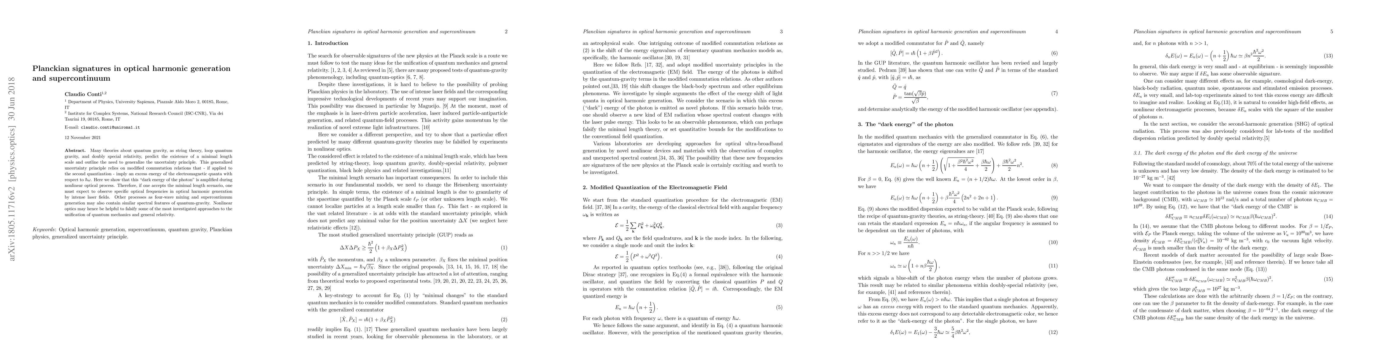 This paper investigates how theories of quantum gravity predict a minimal length scale, potentially observable in optical harmonic generation via intense laser fields. It suggests that nonlinear optical processes like supercontinuum generation may reveal spectral features indicative of quantum-gravity effects, offering a potential avenue to test these theories.