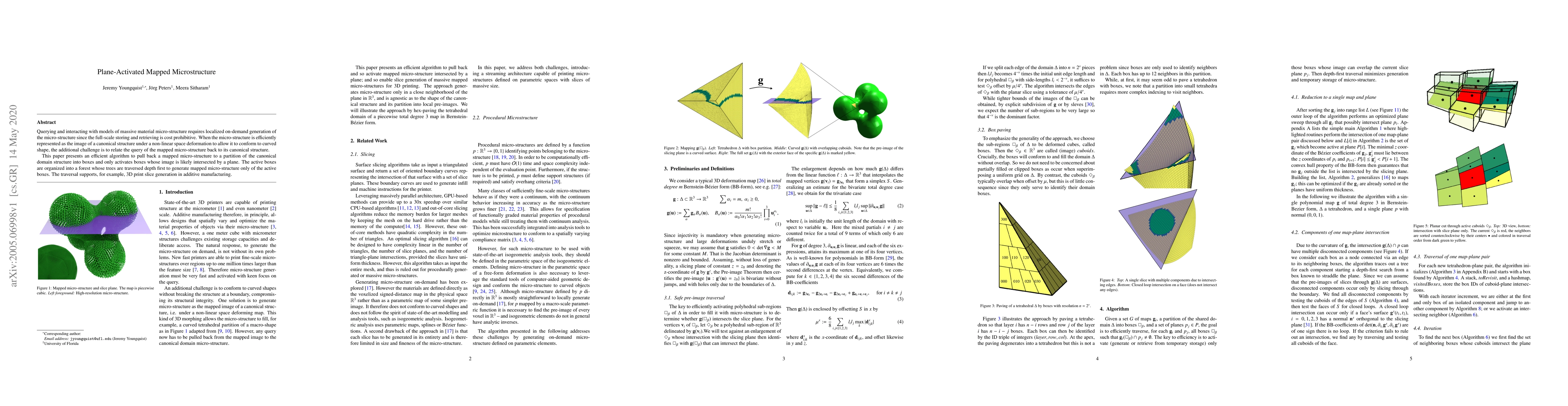 Querying and interacting with models of massive material micro-structure requires localized on-demand generation of the micro-structure since the full-scale storing and retrieving is cost prohibitive. When the micro-structure is efficiently represented as the image of a canonical structure under a non-linear space deformation to allow it to conform to curved shape, the additional challenge is to relate the query of the mapped micro-structure back to its canonical structure. This paper presents an efficient algorithm to pull back a mapped micro-structure to a partition of the canonical domain structure into boxes and only activates boxes whose image is likely intersected by a plane. The active boxes are organized into a forest whose trees are traversed depth first to generate mapped micro-structure only of the active boxes. The traversal supports, for example, 3D print slice generation in additive manufacturing.