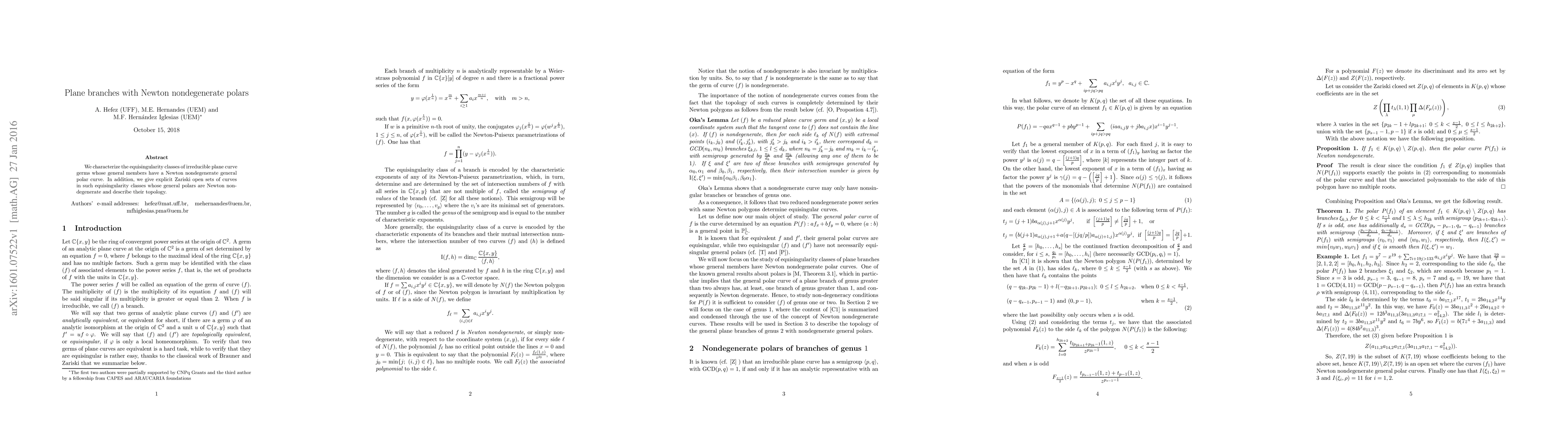 This paper characterizes the equisingularity classes of irreducible plane curve germs with Newton nondegenerate polars, and provides explicit Zariski open sets of such curves with detailed topological descriptions of their general polars.