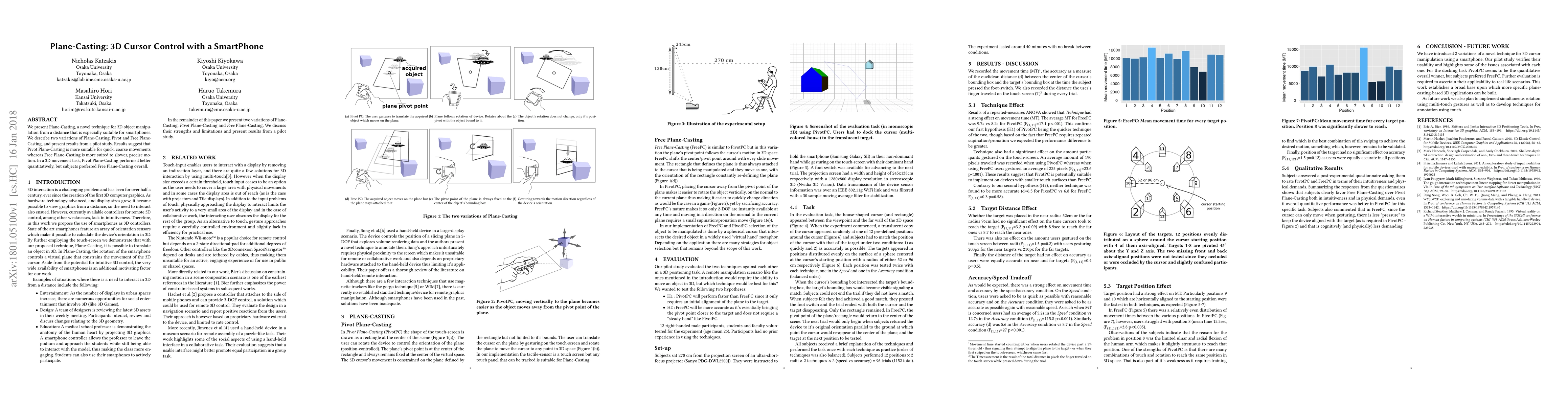We present Plane-Casting, a novel technique for 3D object manipulation from a distance that is especially suitable for smartphones. We describe two variations of Plane-Casting, Pivot and Free Plane-Casting, and present results from a pilot study. Results suggest that Pivot Plane-Casting is more suitable for quick, coarse movements whereas Free Plane-Casting is more suited to slower, precise motion. In a 3D movement task, Pivot Plane-Casting performed better quantitatively, but subjects preferred Free Plane-Casting overall.