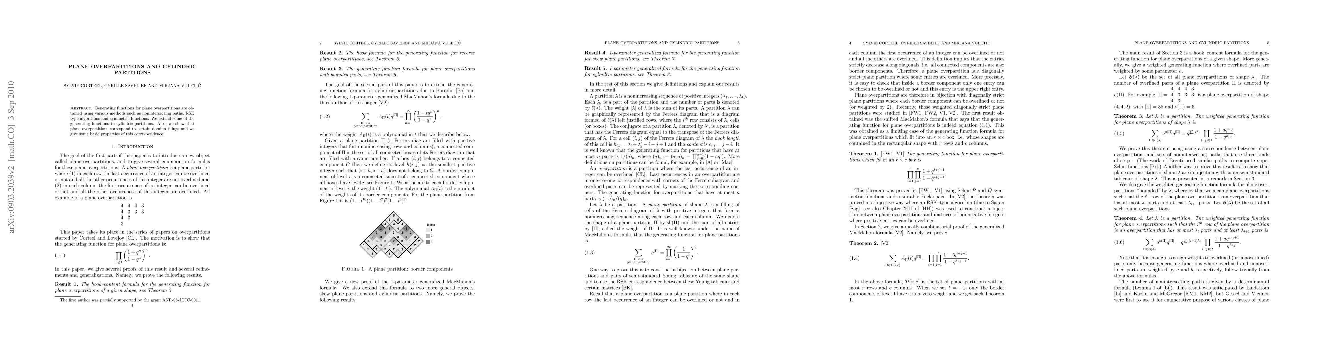This paper derives generating functions for plane overpartitions using methods like nonintersecting paths and RSK algorithms, extends these to cylindric partitions, and establishes a correspondence between plane overpartitions and domino tilings, highlighting basic properties of this relationship.