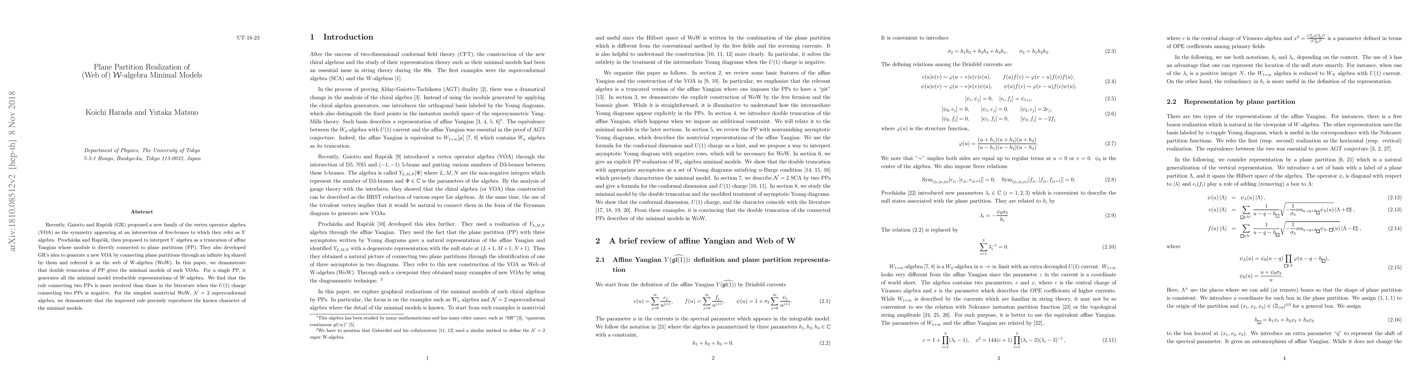 Recently, Gaiotto and Rapcak (GR) proposed a new family of the vertex operator algebra (VOA) as the symmetry appearing at an intersection of five-branes to which they refer as Y algebra. Prochazka and Rapcak, then proposed to interpret Y algebra as a truncation of affine Yangian whose module is directly connected to plane partitions (PP). They also developed GR's idea to generate a new VOA by connecting plane partitions through an infinite leg shared by them and referred it as the web of W-algebra (WoW). In this paper, we demonstrate that double truncation of PP gives the minimal models of such VOAs. For a single PP, it generates all the minimal model irreducible representations of W-algebra. We find that the rule connecting two PPs is more involved than those in the literature when the U(1) charge connecting two PPs is negative. For the simplest nontrivial WoW, N=2 superconformal algebra, we demonstrate that the improved rule precisely reproduces the known character of the minimal models.