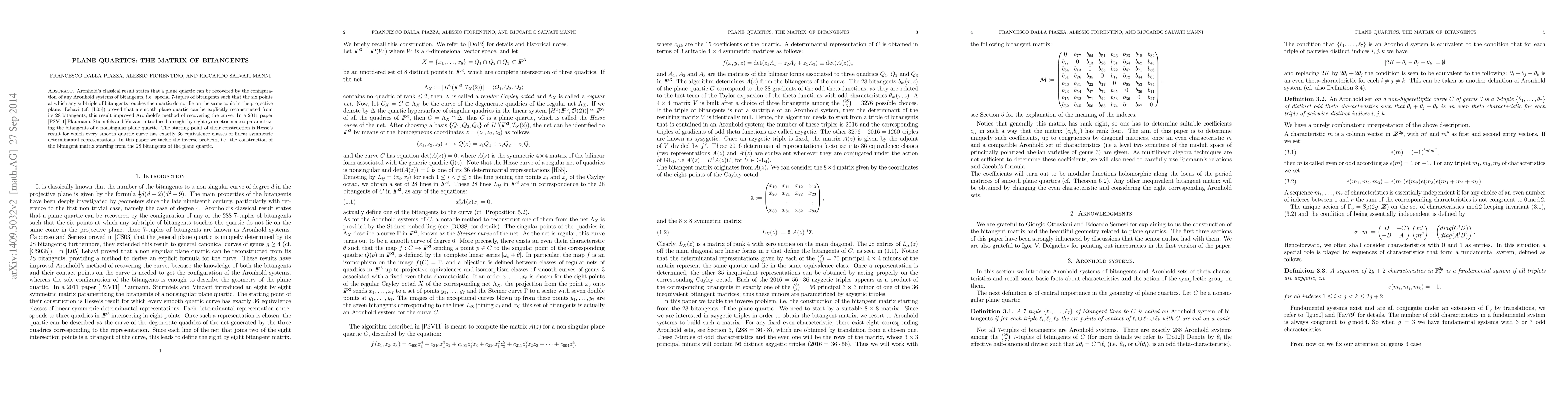 This paper explores the construction of an eight-by-eight symmetric matrix that represents the bitangents of a nonsingular plane quartic, building on previous work that reconstructs the quartic from its 28 bitangents. The authors aim to derive this matrix from the configuration of the plane quartic's bitangents.