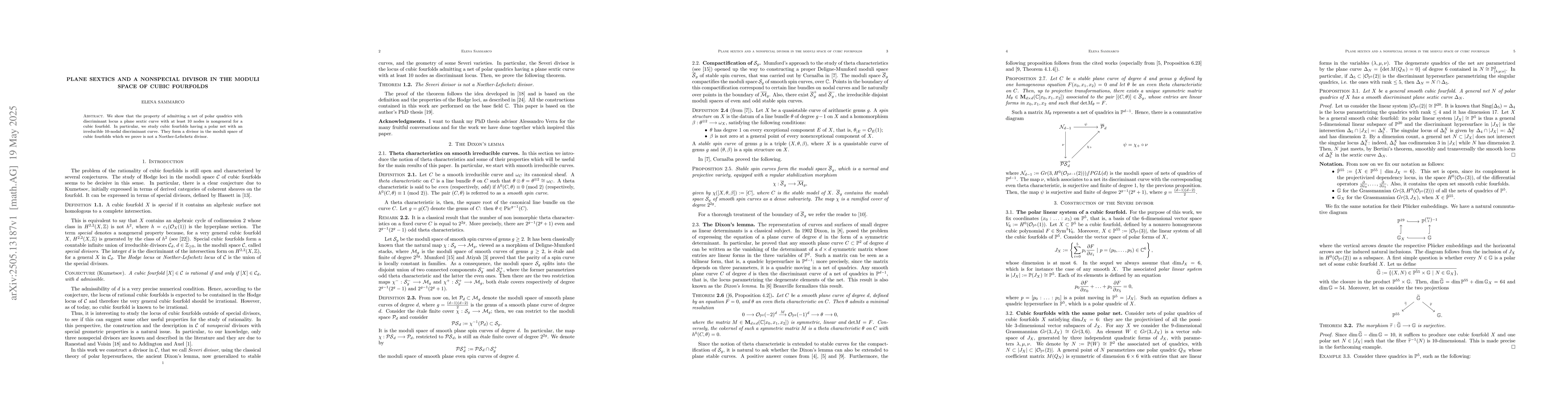 Researchers found a specific type of cubic fourfold with a unique property: its discriminant curve is always a plane sextic curve with at least 10 nodes, which doesn't occur in general cases.