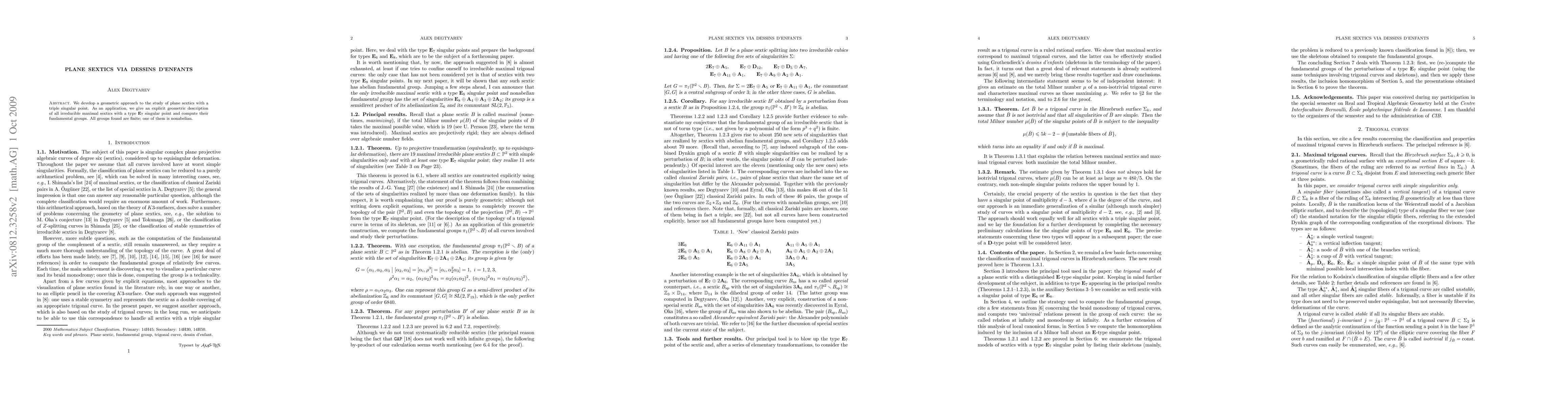 This paper develops a geometric approach to study plane sextics with a triple singular point, providing an explicit description of irreducible maximal sextics with a type $\bold E_7$ singularity and computing their finite fundamental groups, including one nonabelian group.