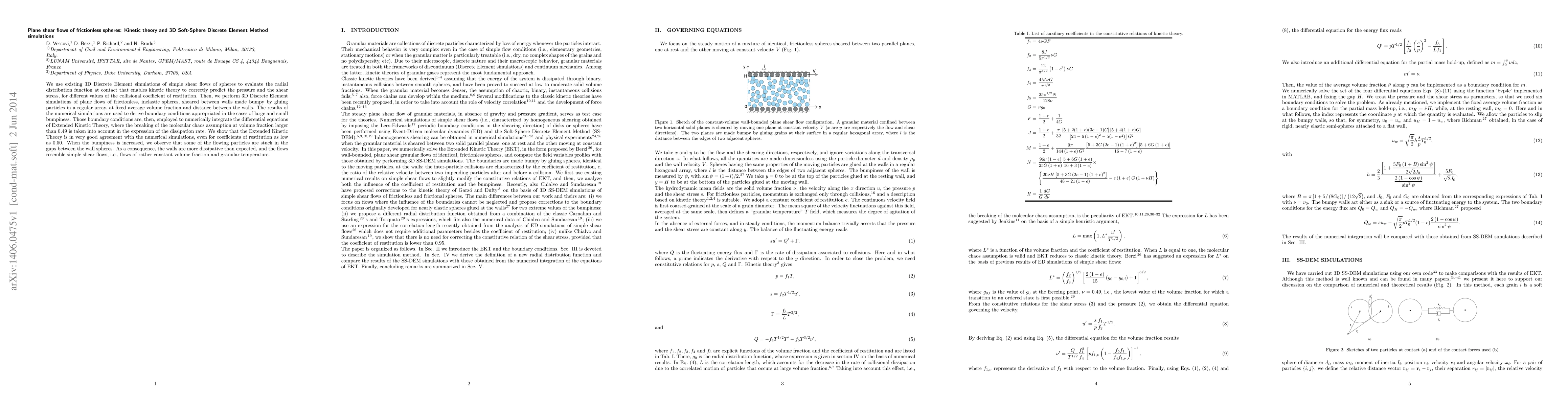 Researchers used computer simulations to study frictionless spheres in plane shear flows, finding that a modified kinetic theory can accurately predict pressure and shear stress. They also discovered that increased 'bumpiness' on the walls leads to particles getting stuck, making the flow resemble simple shear flows.
