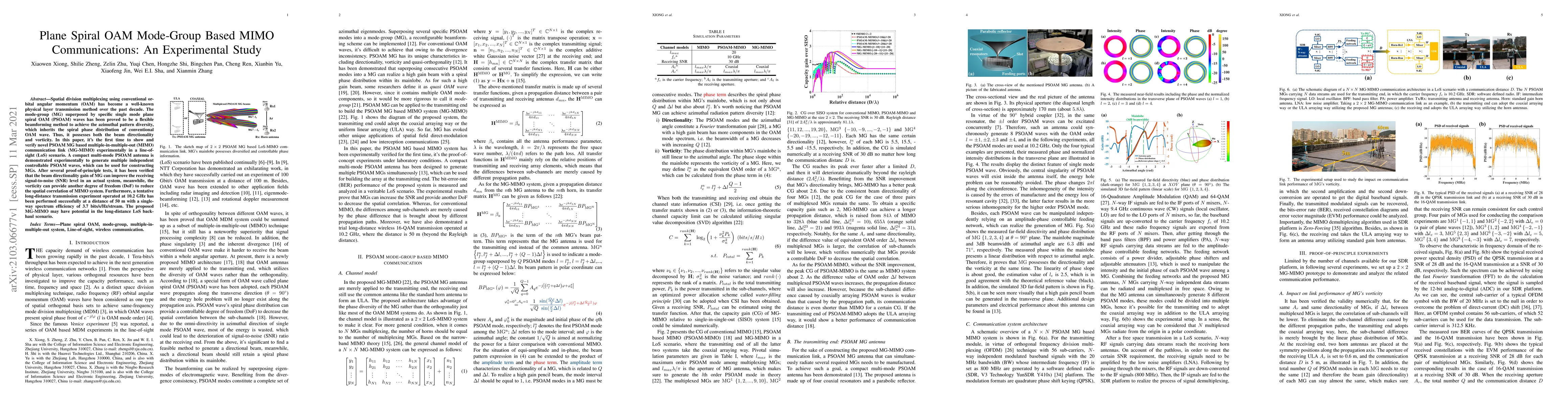 Spatial division multiplexing using conventional orbital angular momentum (OAM) has become a well-known physical layer transmission method over the past decade. The mode-group (MG) superposed by specific single mode plane spiral OAM (PSOAM) waves has been proved to be a flexible beamforming method to achieve the azimuthal pattern diversity, which inherits the spiral phase distribution of conventional OAM wave. Thus, it possesses both the beam directionality and vorticity. In this paper, it's the first time to show and verify novel PSOAM MG based multiple-in-multiple-out (MIMO) communication link (MG-MIMO) experimentally in a line-of-sight (LoS) scenario. A compact multi-mode PSOAM antenna is demonstrated experimentally to generate multiple independent controllable PSOAM waves, which can be used for constructing MGs. After several proof-of-principle tests, it has been verified that the beam directionality gain of MG can improve the receiving signal-to-noise (SNR) level in an actual system, meanwhile, the vorticity can provide another degree of freedom (DoF) to reduce the spatial correlation of MIMO system. Furthermore, a tentative long-distance transmission experiment operated at 10.2 GHz has been performed successfully at a distance of 50 m with a single-way spectrum efficiency of 3.7 bits/s/Hz/stream. The proposed MG-MIMO may have potential in the long-distance LoS back-haul scenario.