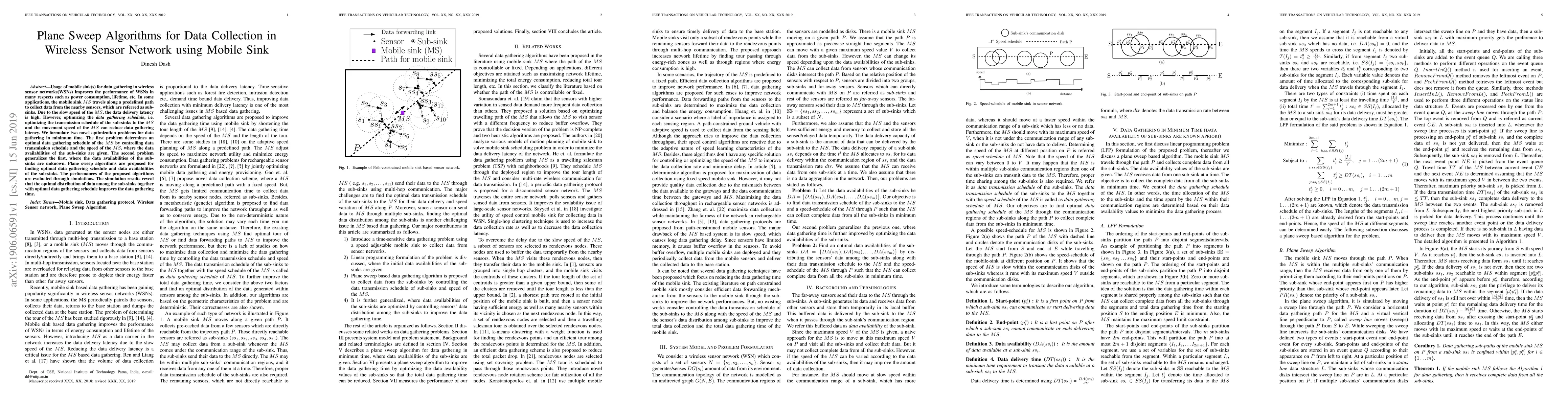 This paper proposes plane sweep algorithms to optimize data collection in wireless sensor networks using a mobile sink. The algorithms aim to minimize data gathering latency by determining optimal data transmission schedules and the mobile sink's speed, evaluated through simulations showing improved data gathering efficiency.
