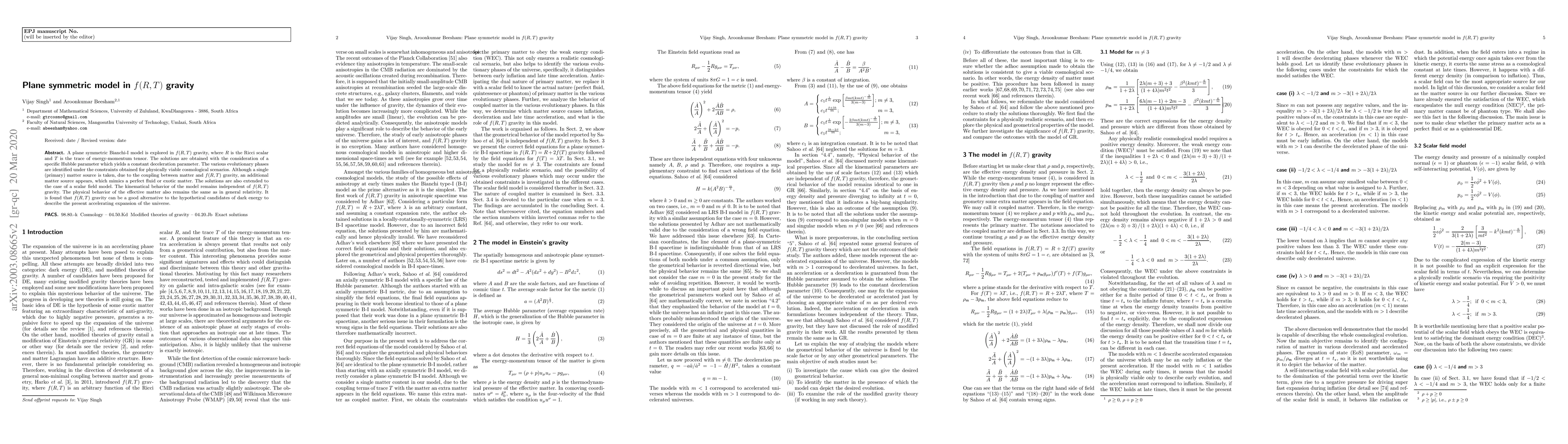 This paper explores a plane symmetric Bianchi-I cosmological model in $f(R,T)$ gravity, identifying evolutionary phases and finding that $f(R,T)$ gravity can describe the universe's accelerating expansion, potentially serving as an alternative to dark energy.