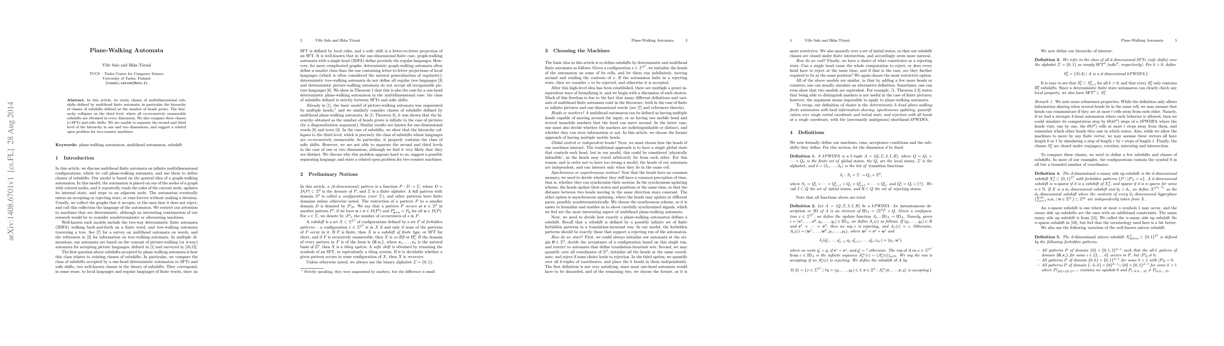 Researchers studied classes of multidimensional subshifts defined by multihead finite automata, finding that a hierarchy collapses on the third level, where co-recursively enumerable subshifts are obtained in every dimension. This work compares these classes to SFTs and sofic shifts, but fails to separate some levels.