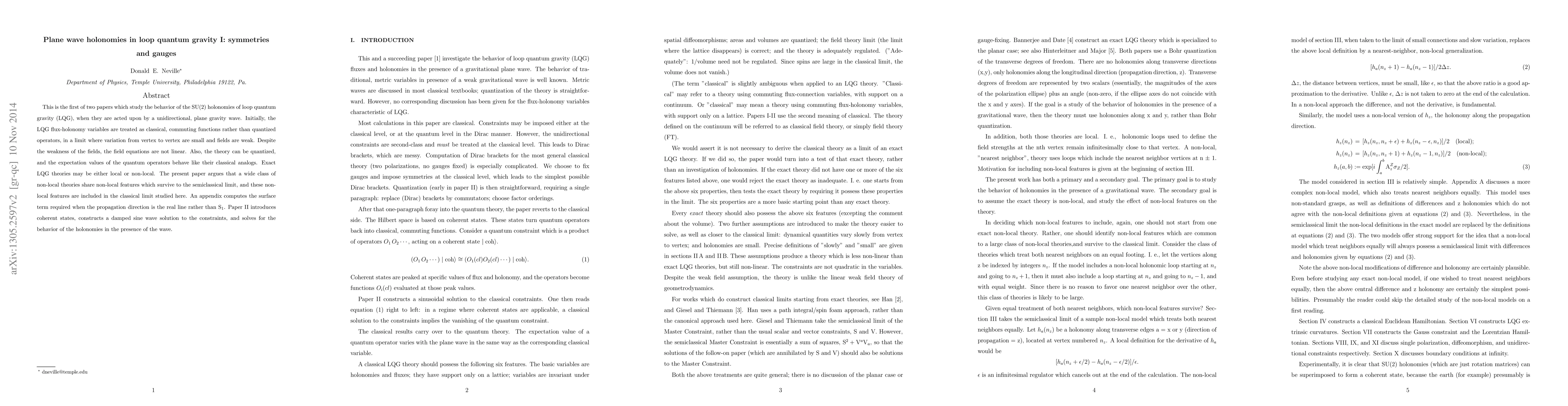 The paper presents detailed classical analysis of LQG holonomies under plane waves, including surface terms and constraints, and establishes important identities and relationships that hold even in non-local theories when discrete approximations replace continuous derivatives.