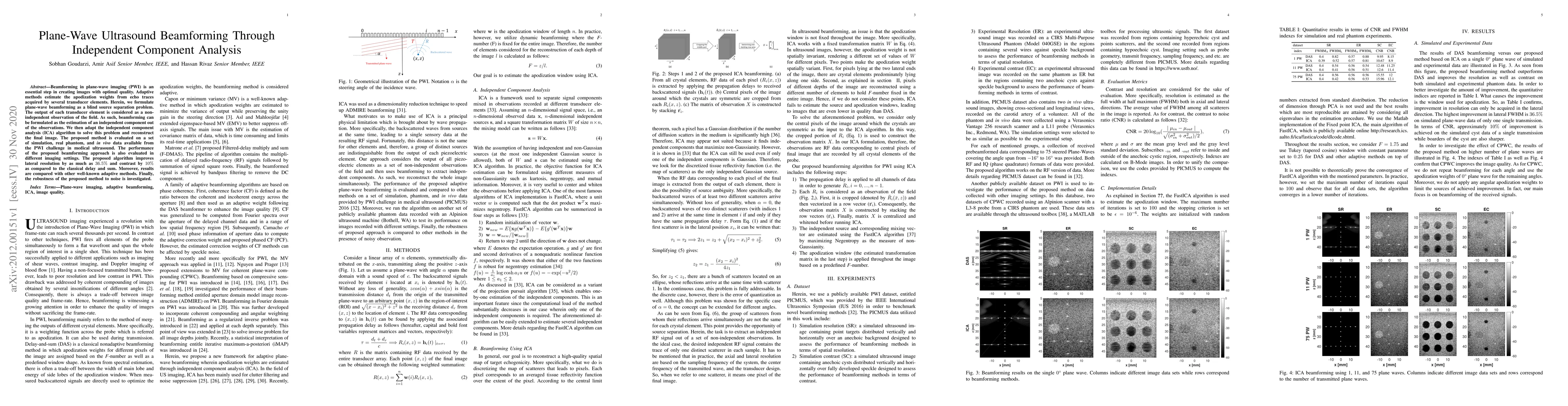 This paper proposes a novel plane-wave ultrasound beamforming technique using Independent Component Analysis (ICA) to enhance image quality, achieving a $36.5\%$ improvement in lateral resolution and $10\%$ in contrast compared to traditional methods, while demonstrating robustness against noise.